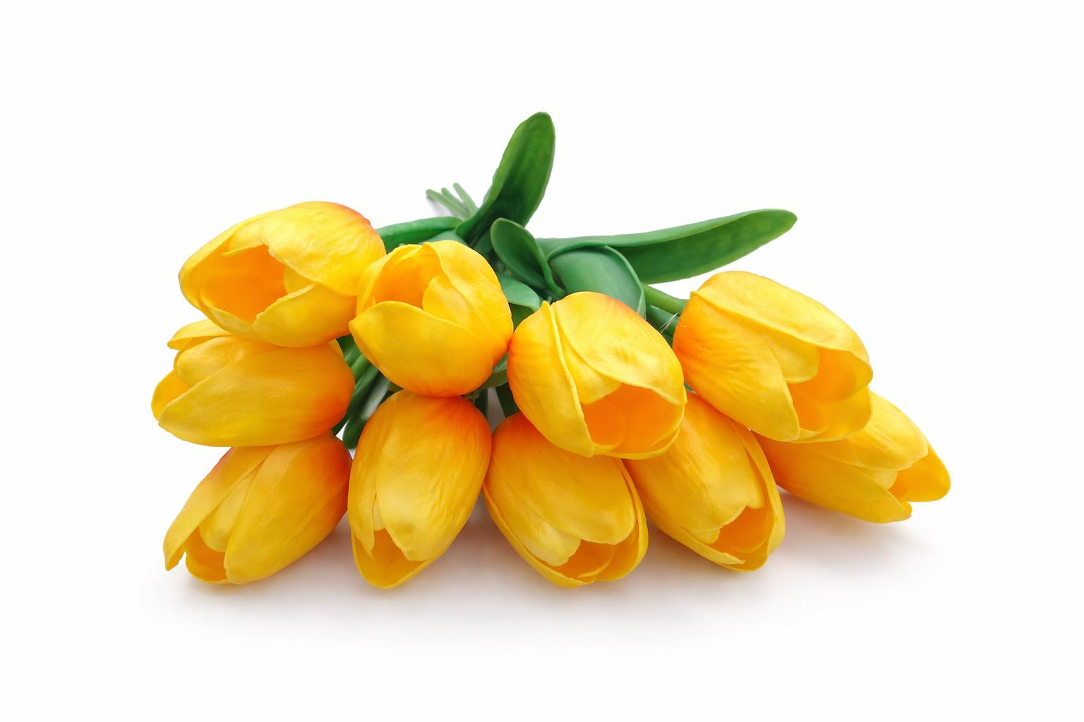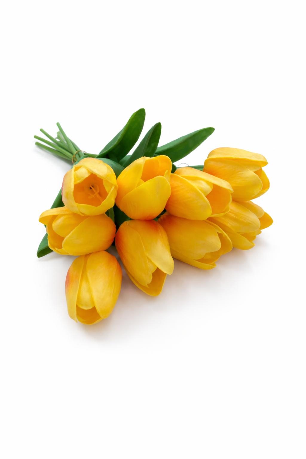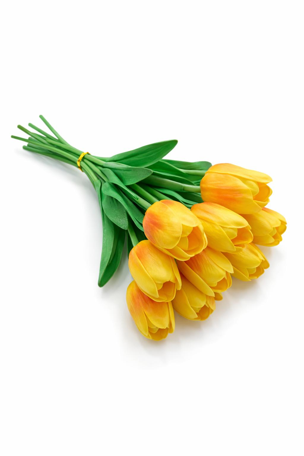 Set decorativ format din 10 lalele artificiale in nuanta galben intens, cu accente calde portocalii la baza petalelor, care ofera un efect luminos si plin de vitalitate. Culoarea vibranta reda frumusetea unei lalele inflorite in soare, aducand energie si prospetime oricarui spatiu. Realizate din spuma siliconata cu efect soft touch, florile au un aspect realist si o textura placuta la atingere. Fiecare lalea este dispusa pe fir individual, separabil, cu inaltimea de aproximativ 33 cm, permitand realizarea unor aranjamente florale creative si naturale, fara a necesita intretinere si pastrandu-si culoarea si forma in timp.
