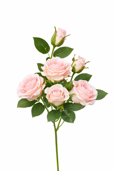 Set decorativ cu 3 trandafiri roz deschis infloriti si 2 boboci, cu aspect natural. Ideal pentru aranjamente florale, decor interior si evenimente speciale.