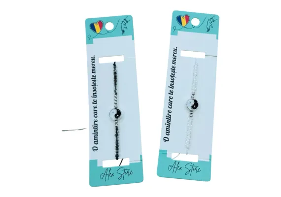 Bratara cu margele si pandantiv Yin Yang este un accesoriu cu semnificatie profunda, simbolizand echilibrul dintre energii opuse si armonia interioara. Disponibila in doua variante – alb si negru – bratara se potriveste perfect atat femeilor, cat si barbatilor, fiind un model unisex si versatil.Realizata pe snur reglabil, bratara este usor de purtat si confortabila, ideala pentru purtare zilnica sau ca simbol personal. Margelele fine si pandantivul central rotund creeaza un look simplu, dar plin de sens.O alegere inspirata pentru cei care cauta un accesoriu discret, cu mesaj pozitiv si energie echilibrata. Poate fi purtata individual sau in seturi, pentru un efect mai personalizat.