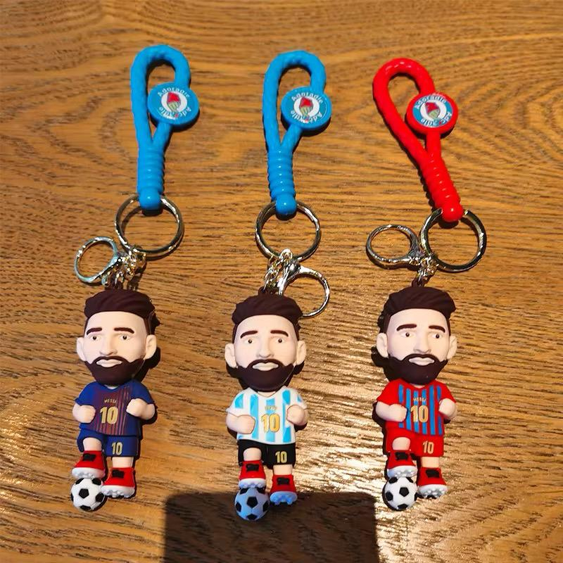 Poarta cu tine simbolul pasiunii pentru fotbal cu acest breloc 3D din silicon, reprezentand un jucator celebru cu numarul 10, in echipamente diferite: alb-albastru (nationala), rosu-albastru si bleumarin. Figurina este detaliata si include minge de fotbal si o curelusa colorata, perfecta pentru chei, ghiozdan, rucsac sau geanta sport.Brelocul are carabina si inel metalic auriu pentru prindere rapida si sigura. Este un accesoriu ideal pentru suporteri, colectionari sau ca un cadou original pentru fanii fotbalului.Un must-have pentru oricine vrea sa isi arate sustinerea pentru jucatorul favorit intr-un mod creativ si amuzant!