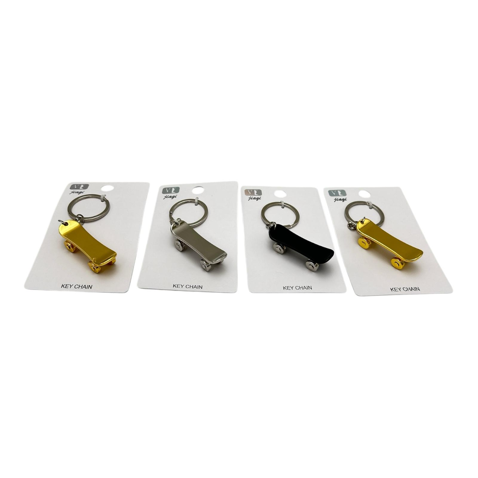 Brelocul tip skateboard din inox, disponibil in culorile negru, argintiu si auriu, este un accesoriu cool si original, perfect pentru chei, rucsacuri sau genti. Realizat din inox de calitate superioara, acest breloc combina durabilitatea cu un design urban inspirat din cultura skateboarding.Cu un finisaj elegant si roti mobile pentru un plus de realism, brelocul adauga stil si personalitate trusei tale de chei. Ideal ca si cadou pentru pasionatii de sporturi extreme sau pentru cei care apreciaza accesoriile creative si inedite.