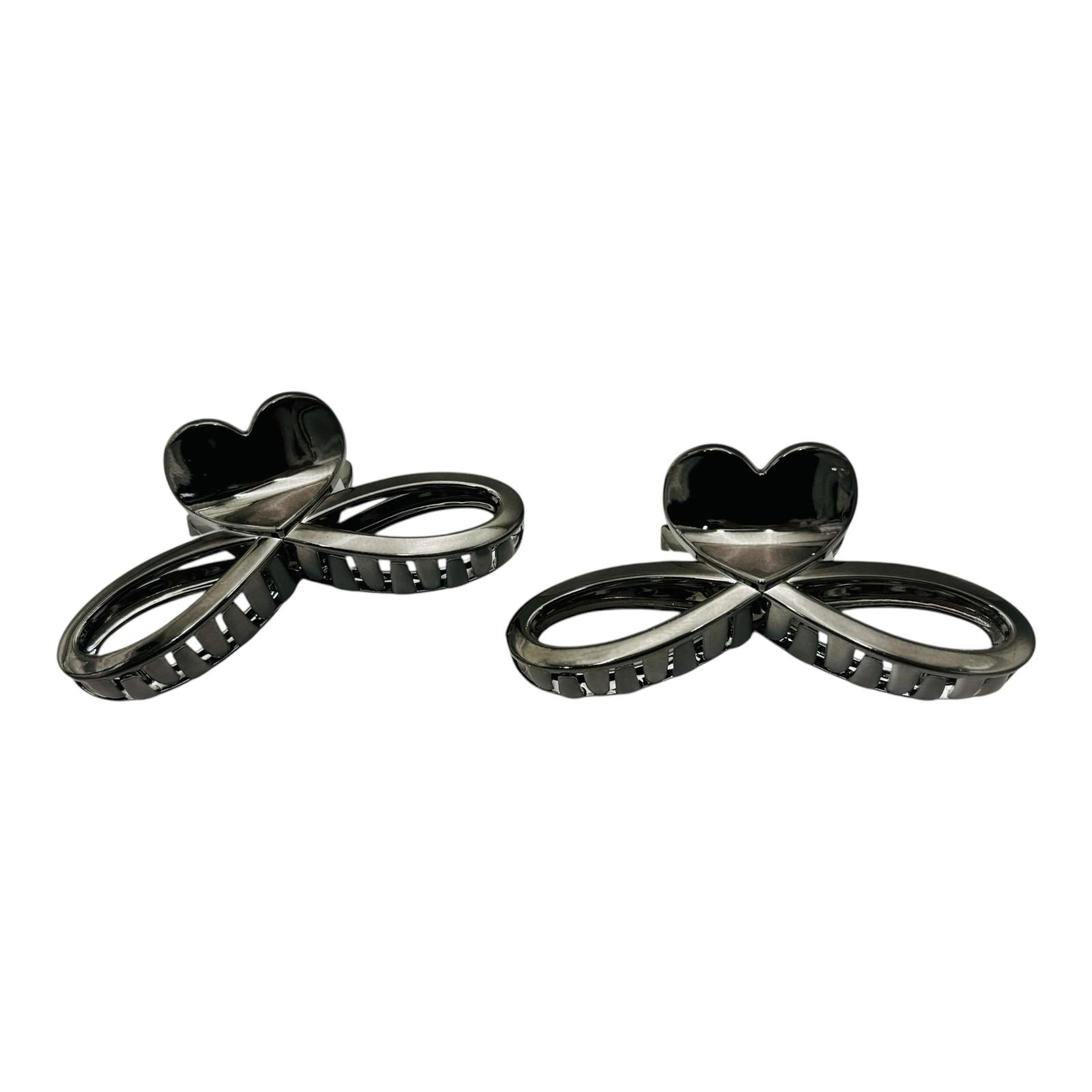 Clește de Păr Mare 12.5cm, Model Inimioară, Negru Metalic, Cu Etichetă pentru Expunere | Accesoriu Elegant |