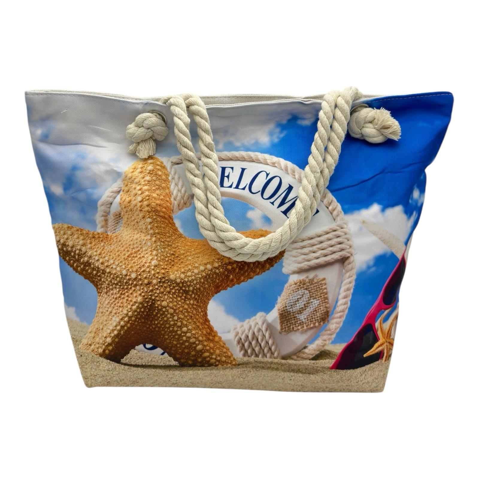 Pregateste-te pentru vara cu aceasta geanta incapatoare pentru plaja, realizata din poliester 100% durabil, cu un design marin modern si vibrant. Cu dimensiuni de 55x38 cm, este perfecta pentru a-ti lua toate esentele la mare – prosop, lotiune, gustari si multe altele. Usoara, practica si cu vibe de vacanta, geanta ideala pentru escapadele estivale!