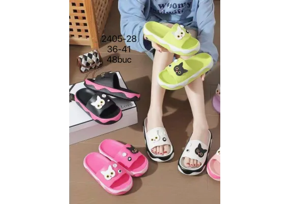 Adauga un strop de amuzament si culoare tinutelor tale de vara cu acesti papuci adorabili decorati cu pisicute 3D. Sunt perfecti pentru plimbari lejere, relaxare acasa sau iesiri rapide. Talpa este moale si confortabila, oferind sustinere si comoditate in orice moment al zilei. Papucii sunt disponibili intr-o gama de marimi de la 36 la 41 si vin in mai multe combinatii de culori atractive. Designul haios si stilul casual ii fac ideali pentru orice iubitoare de confort si stil jucaus.