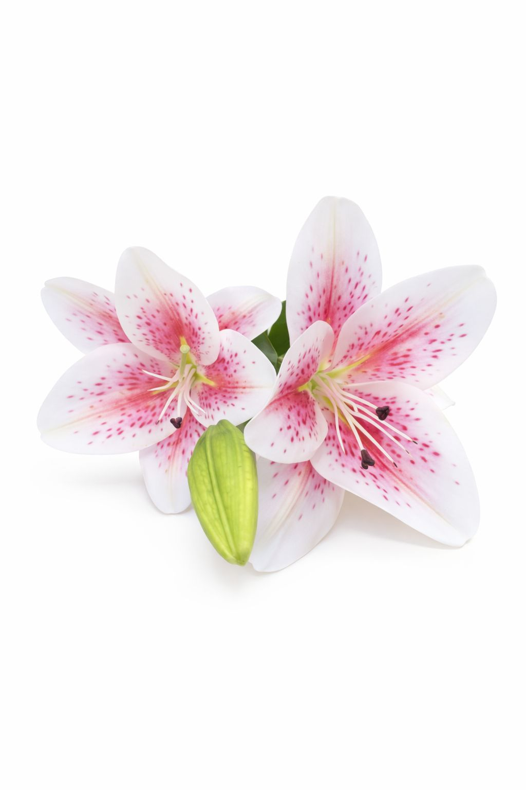 Crin artificial decorativ in nuanta alb cu accente roz in interiorul petalelor, realizat cu doua flori deschise, un boboc si frunze verzi cu aspect natural. Florile sunt dispuse pe un singur fir solid, oferind un design echilibrat si elegant, usor de integrat in vaze sau aranjamente florale. Cu o inaltime de aproximativ 63 cm, acest crin artificial este ideal pentru decorarea locuintei, biroului, evenimentelor sau spatiilor comerciale, pastrandu-si forma si culorile in timp fara a necesita intretinere.
