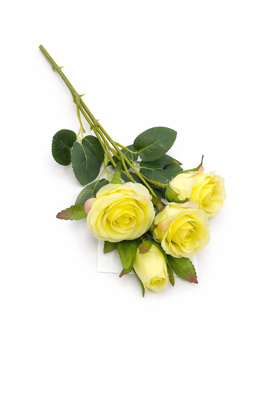 Set decorativ cu 3 trandafiri galbeni infloriti si 2 boboci, cu aspect natural. Ideal pentru aranjamente florale, decor interior si evenimente speciale.