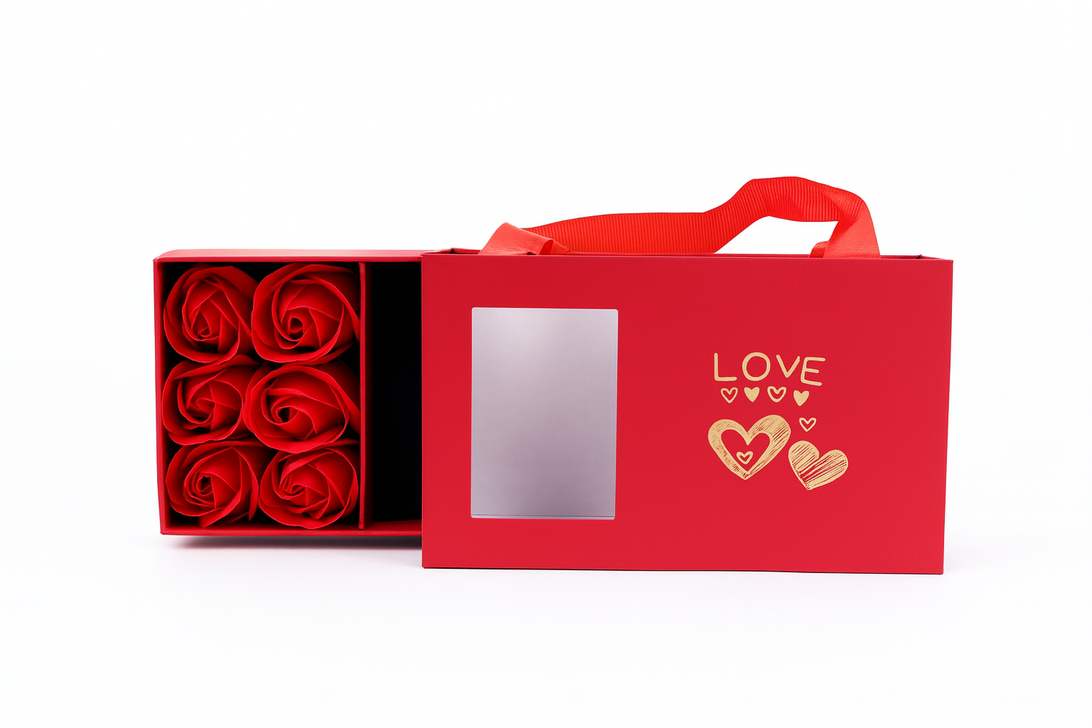 Acest set cadou cu 6 trandafiri de sapun rosii este conceput pentru a impresiona prin designul sau elegant si forma practica, tip poseta. Un cadou romantic si modern, ideal pentru momentele in care vrei sa oferi ceva special, bine prezentat si cu impact vizual.