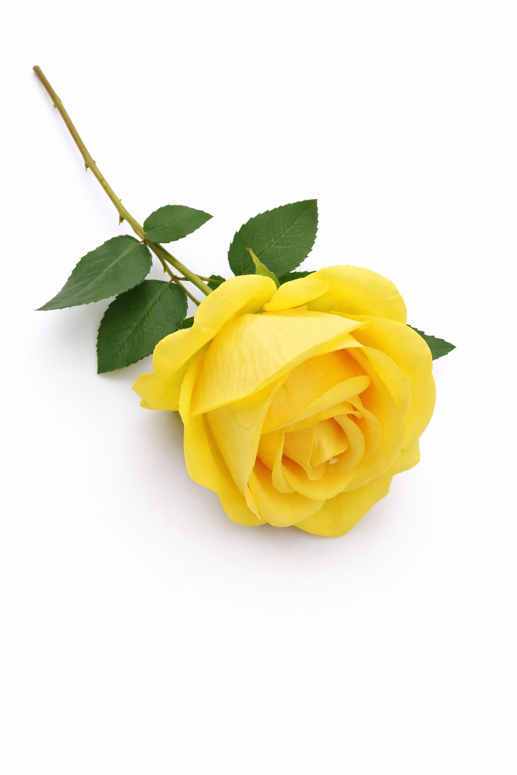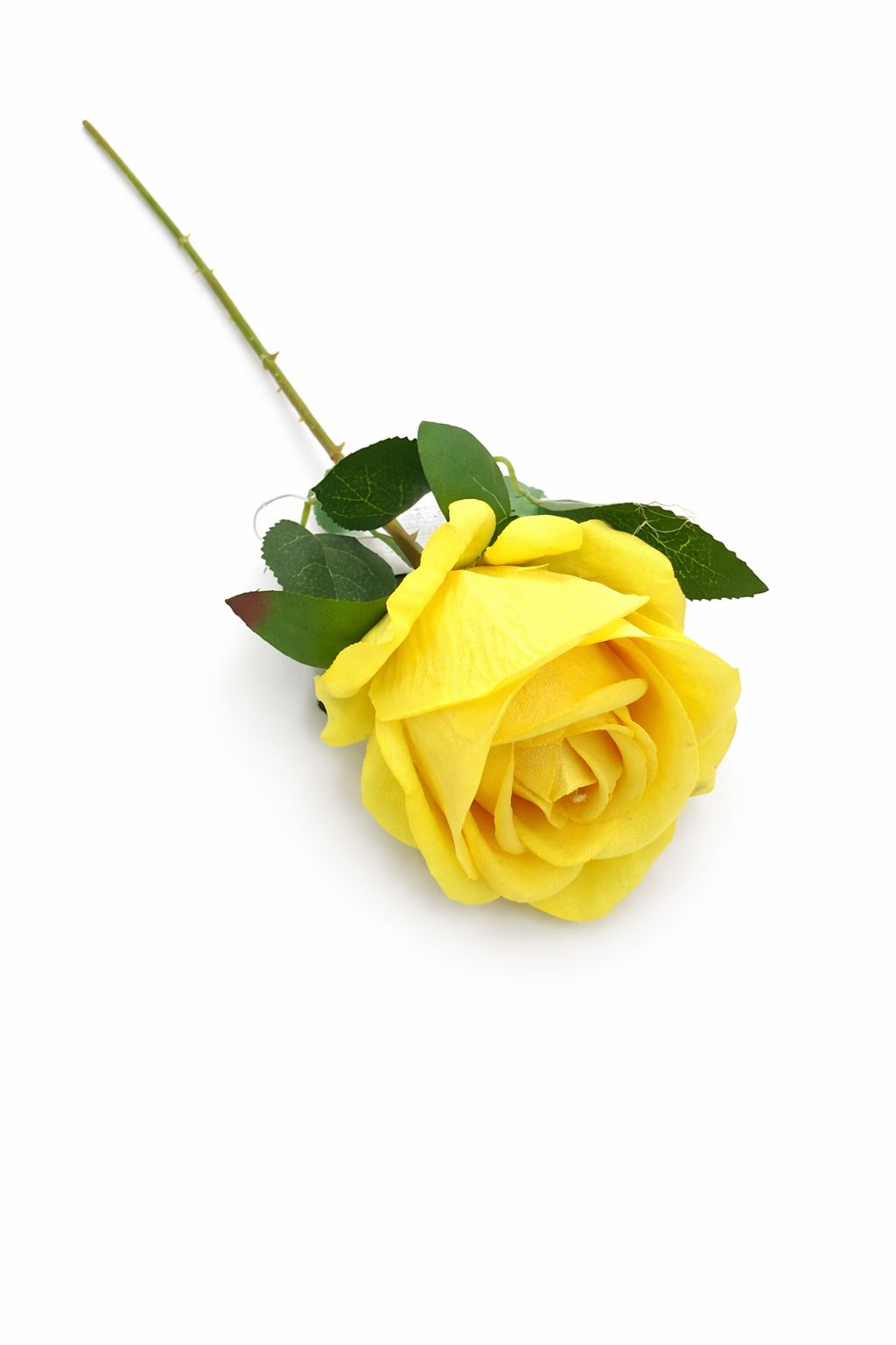 Trandafir artificial galben cu petale catifelate si frunze 46 cm calitate superioara