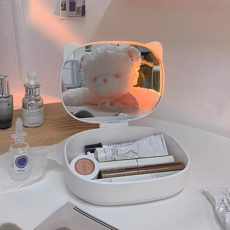 Acest set fermecător are o oglindă în formă de pisică, completată cu urechi și mustăți drăguțe, adăugând o notă de capriciu vanității tale.