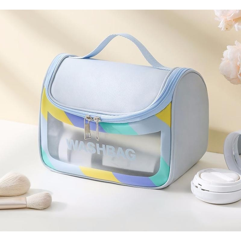Informatii utile: Inaltime:16 cm, Culoare:Albastru, Tip:Clasic, Destinat pentru:Make-up, Tip produs:Geanta cosmetice, Tip inchidere:Fermoar, Material interior:PVC, Material exterior:PVC, Numar compartimente:2, Adancime:14 cm, Lungime:22 cm, Greutate:210 g, Caracteristici cheie:Organizator