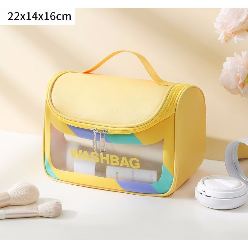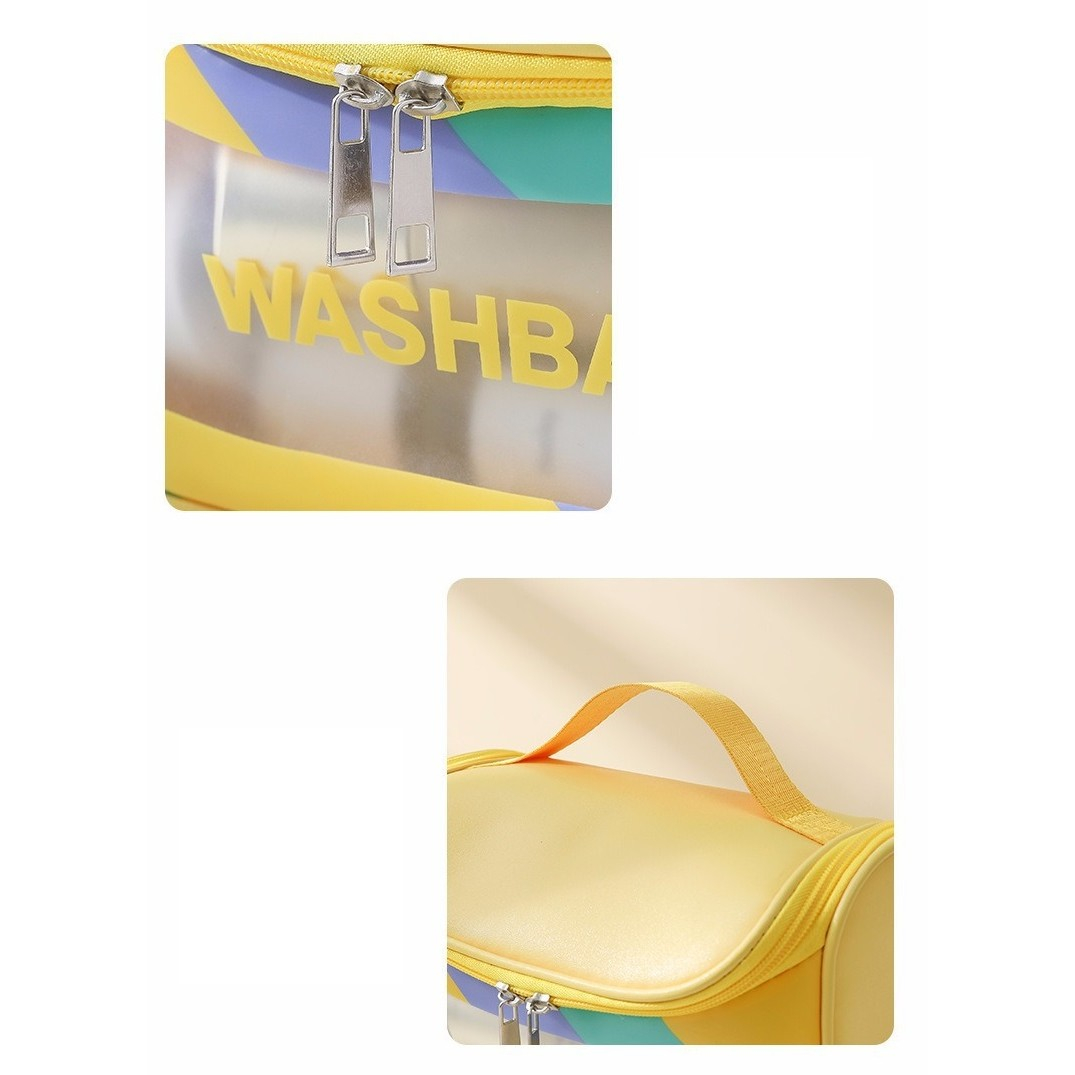 Material Durabil: Geanta este realizată din PVC rezistent, care nu doar că oferă durabilitate, dar și rezistență la apă. Acest lucru asigură că produsele dvs. de toaletă și cosmetice sunt protejate în timpul călătoriilor.