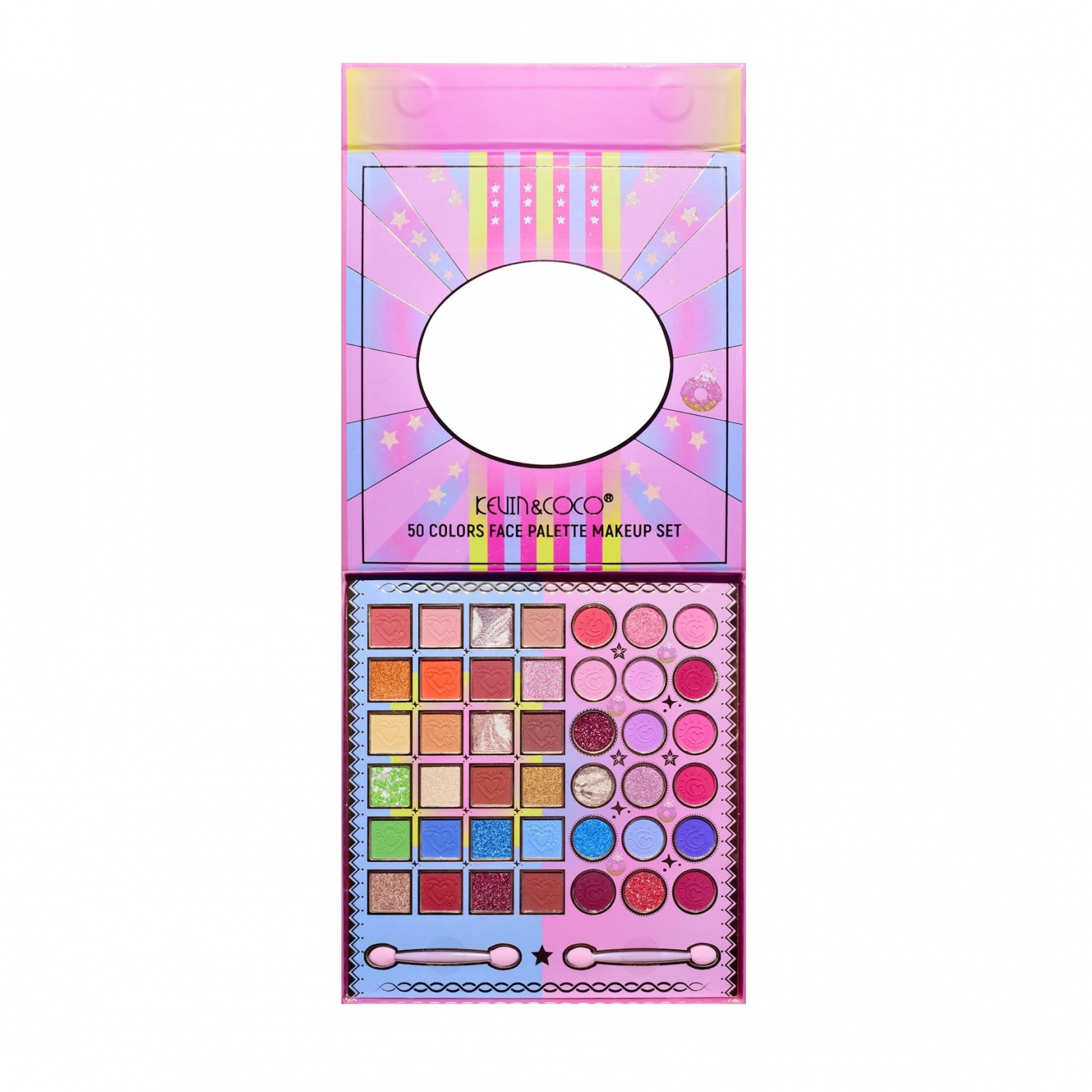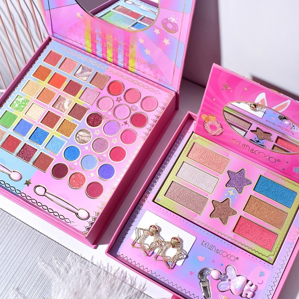 Paleta de Machiaj, KEVIN & COCO, Best Partner, Fard de Pleoape, Breloc si Cercei, 50 culori, 22 x 21 x 5cm