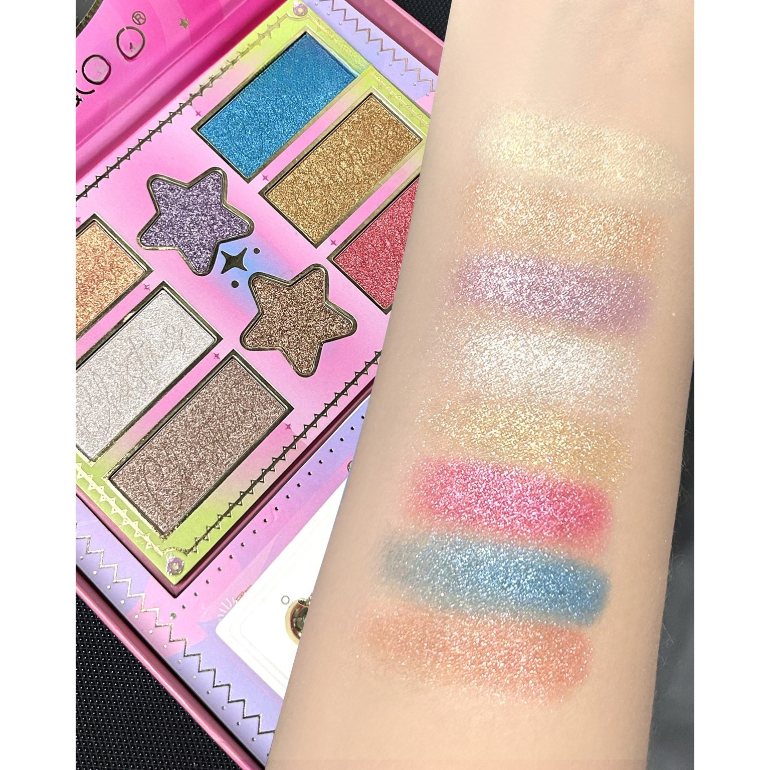 În plus față de farduri și iluminatoare, paleta este livrată împreună cu un breloc și o pereche de cercei, aducând un plus de stil și originalitate setului. De asemenea, paleta include doi aplicatoare pentru fard, pentru a te ajuta să aplici culorile cu precizie și ușurință.