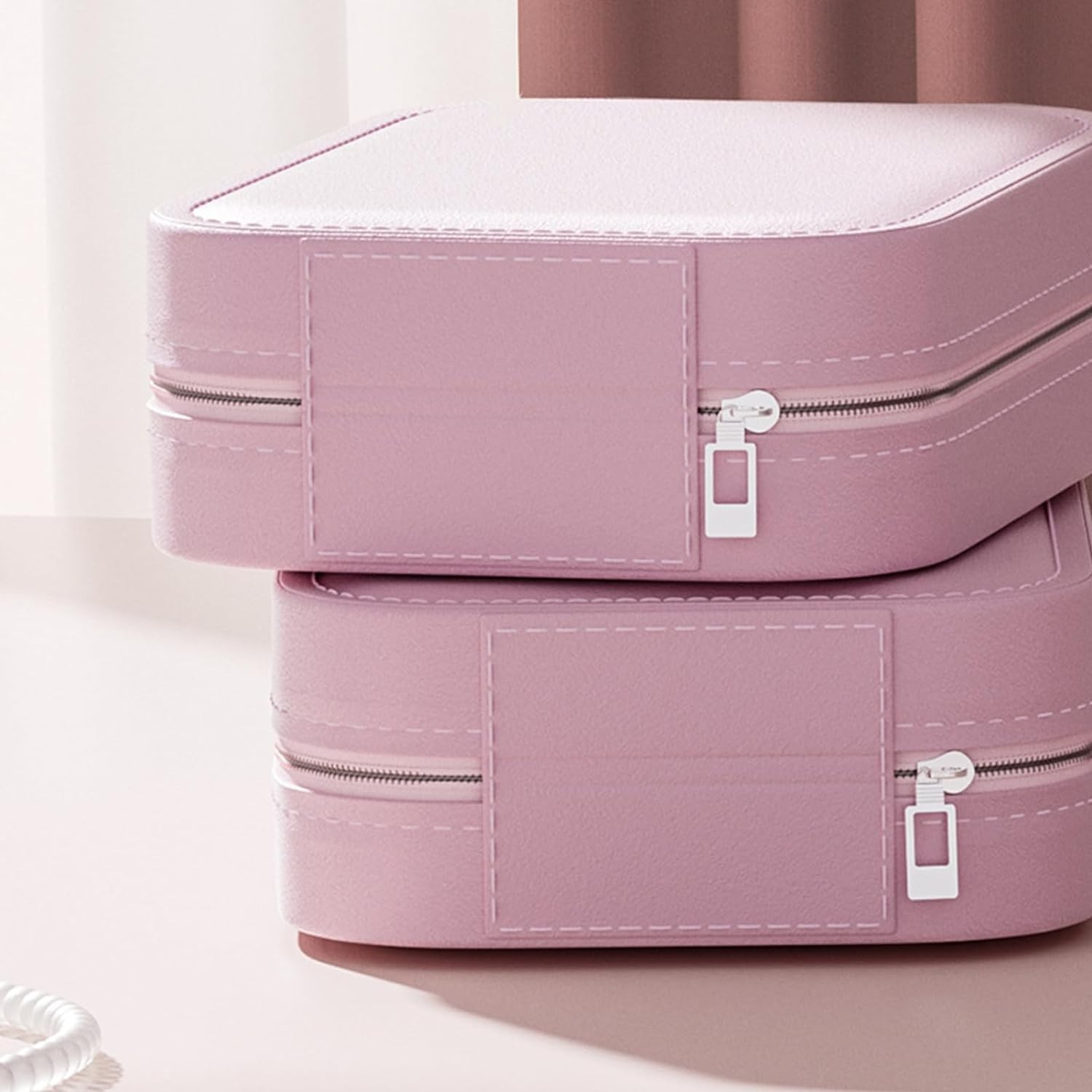 Portfard, Flippy, Geanta Cosmetice, cu Oglinda LED, 3 Moduri de Lumina, Incarcare USB, Baterie 1200 mAh, pentru Organizarea Cosmeticelor, 4 Compartimente, Imitatie Piele, Roz, 16.5x11.5x6 cm