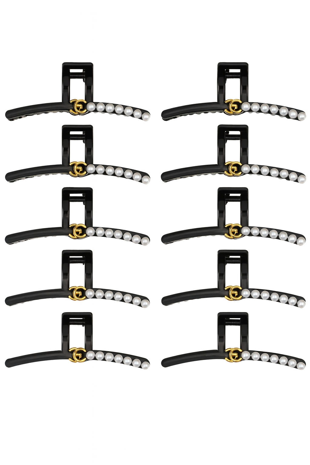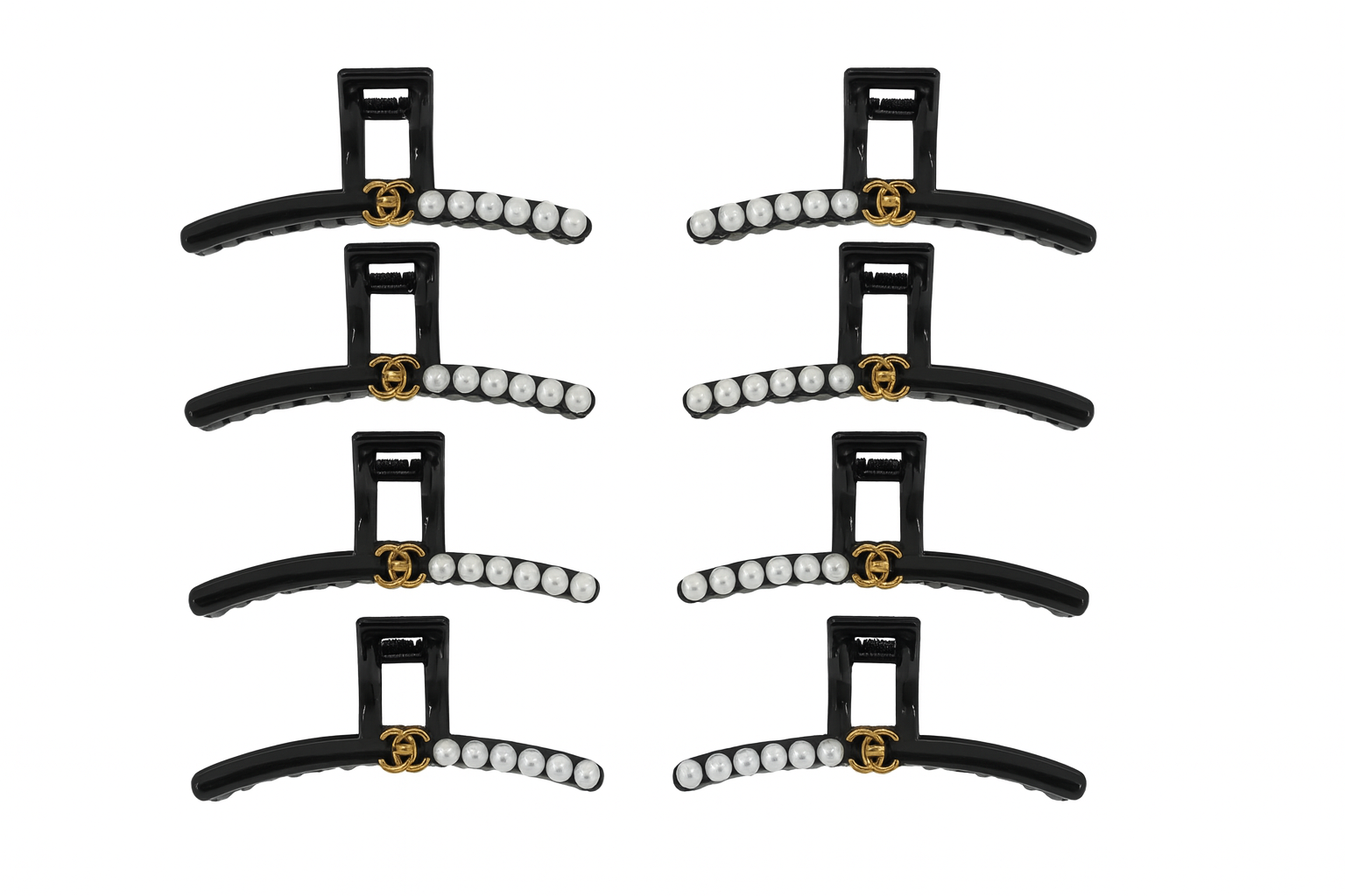 Adauga in colectia ta un set elegant si rafinat cu 12 cleme de par de 14 cm, decorate cu un sir de perle albe si un detaliu auriu ce confera un aspect luxos si sofisticat. Clemele sunt fabricate din material rezistent, cu arc puternic, oferind o prindere excelenta pentru par mediu, lung sau des.
