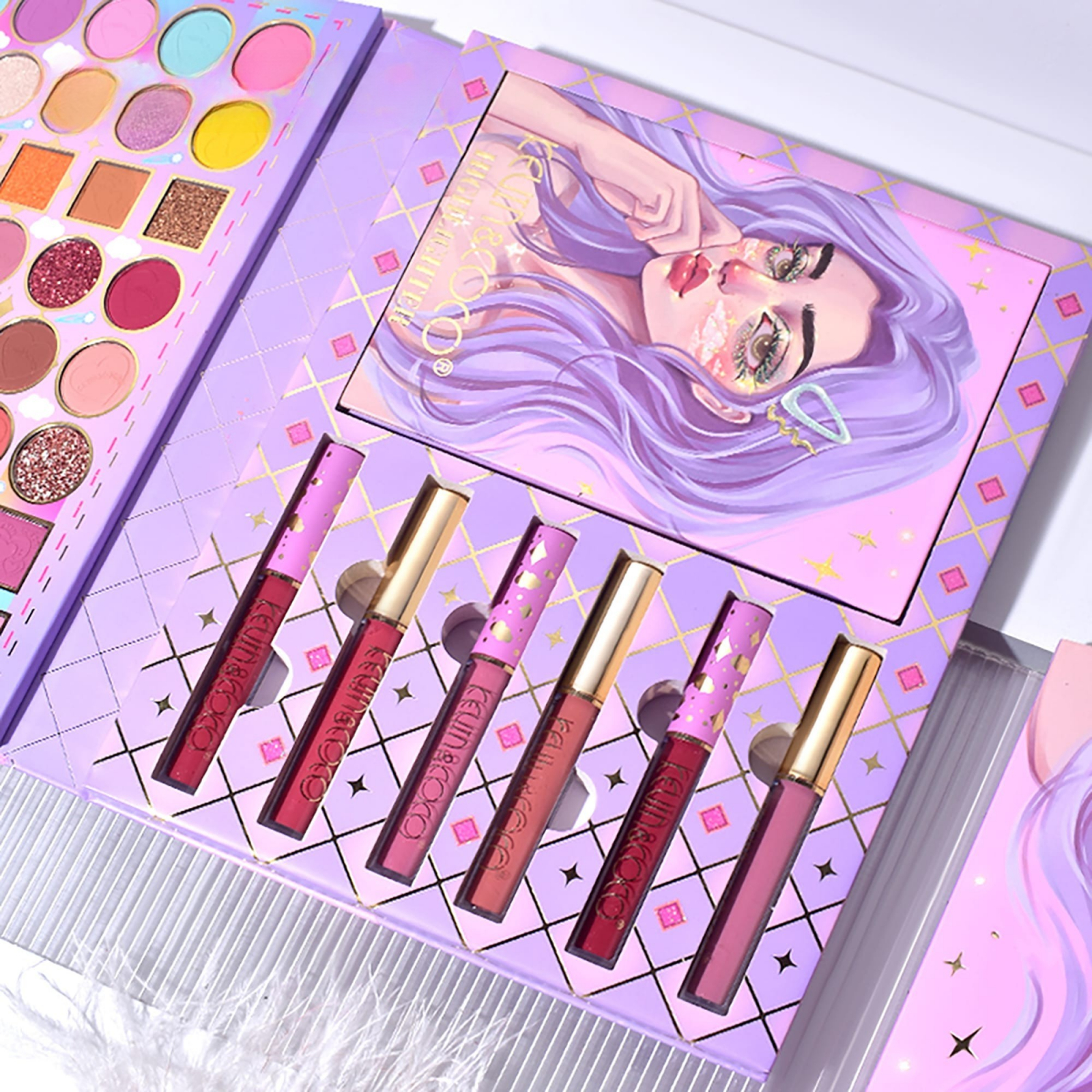 Set 8 Produse de Machiaj, KEVIN & COCO, Violet Fairy, 51 culori, 19.5 x 24.5 x 2.5 cm