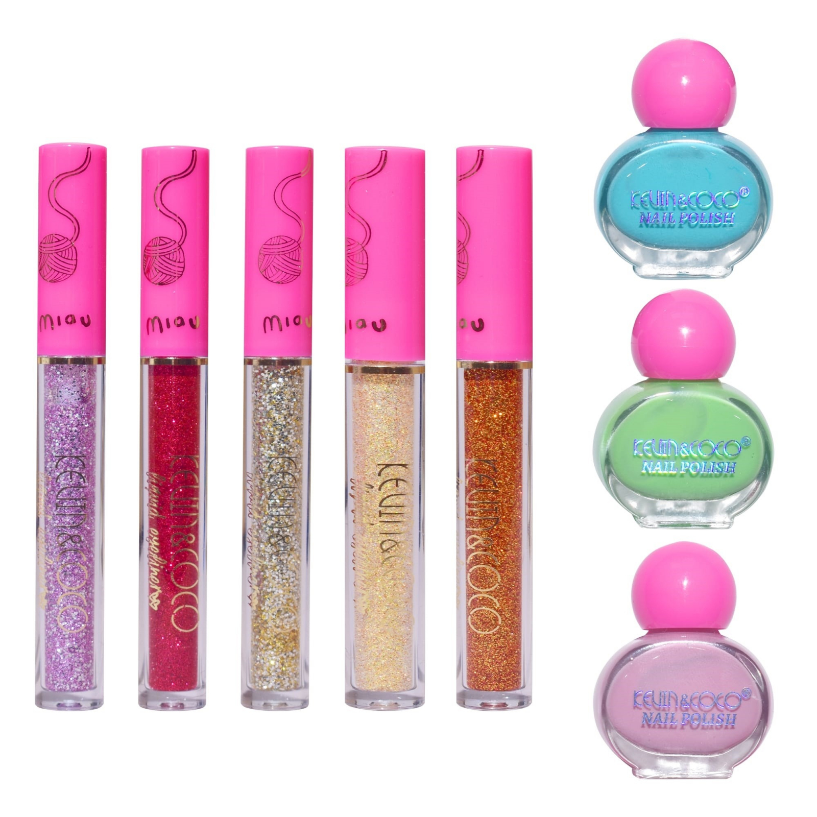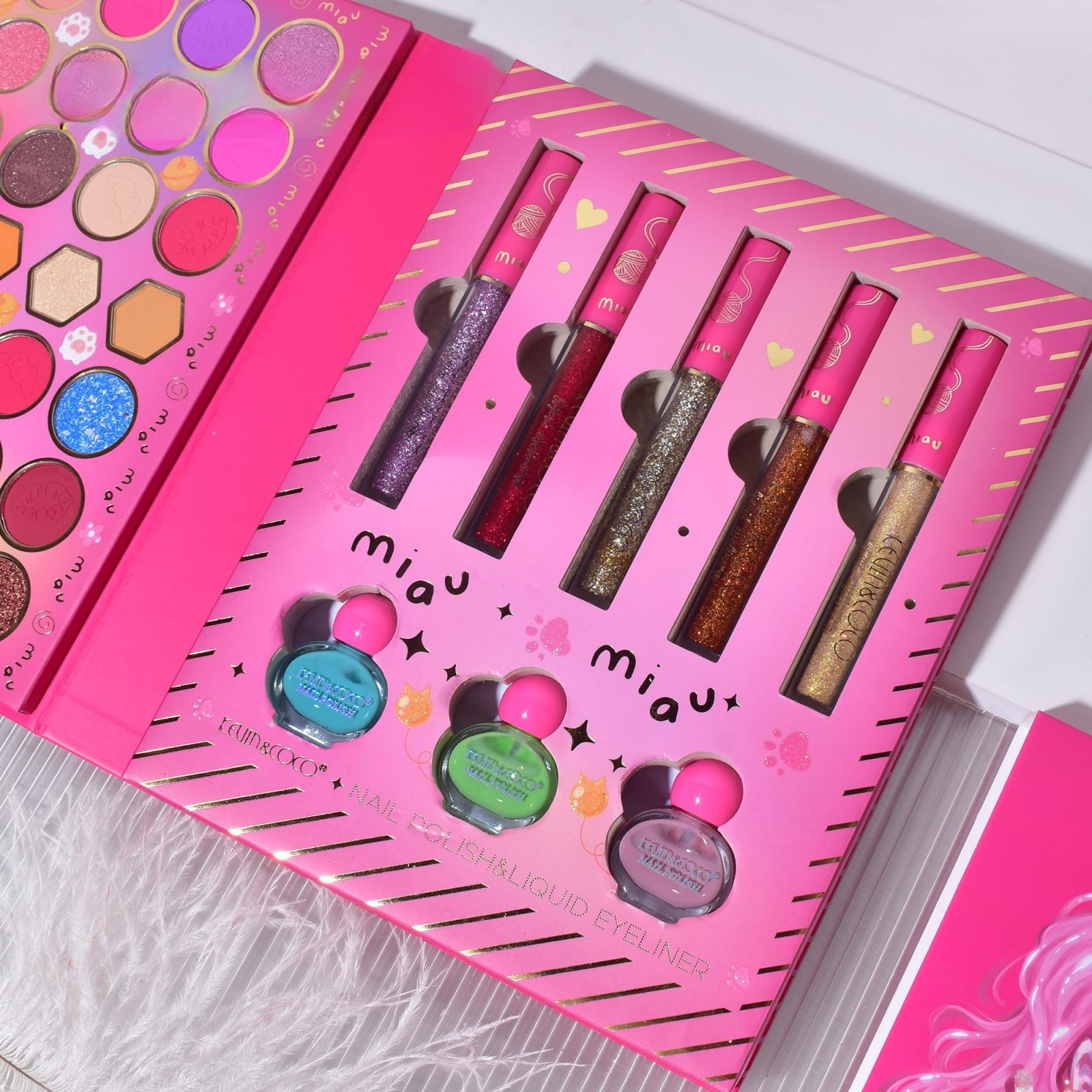 Set 9 Produse de Machiaj, KEVIN & COCO, Cool Girl and Cat, 35 de culori, 21.5 x 16.8 x 3 cm