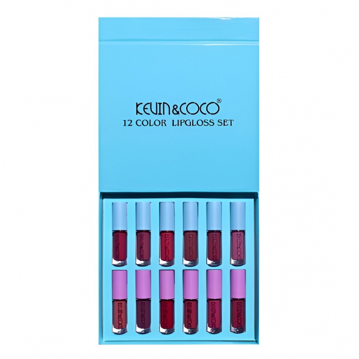 Set Rujuri de Buze, KEVIN & COCO, 12 Culori, 17x14.8x2.9 cm, Diferite Nuante, Albastru