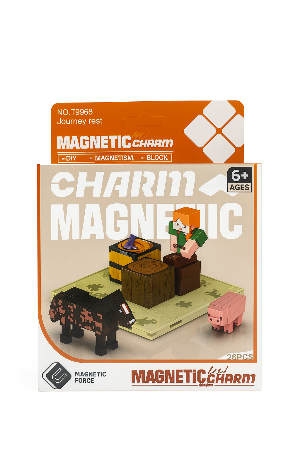 Setul Magnetic Charm – Journey Rest este o jucarie creativa care le permite copiilor sa recreeze o scena pixelata cu personaj, animale si elemente de decor. Cele 26 de piese magnetice sunt usor de combinat si se potrivesc perfect cu alte seturi similare, fiind ideale pentru colectionare.