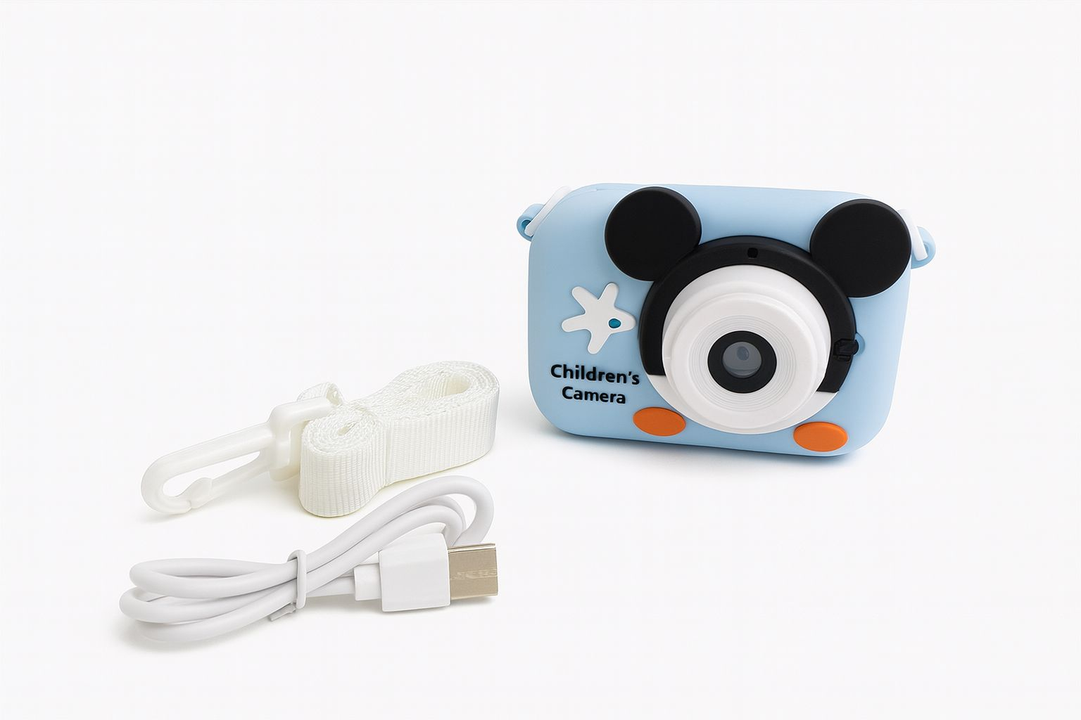 Camera foto digitala pentru copii, model albastru cu design de soricel simpatic, este perfecta pentru micii fotografi care vor sa exploreze lumea si sa surprinda momente distractive. Carcasa din silicon moale ofera protectie excelenta si un aspect prietenos.