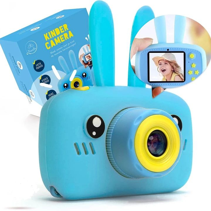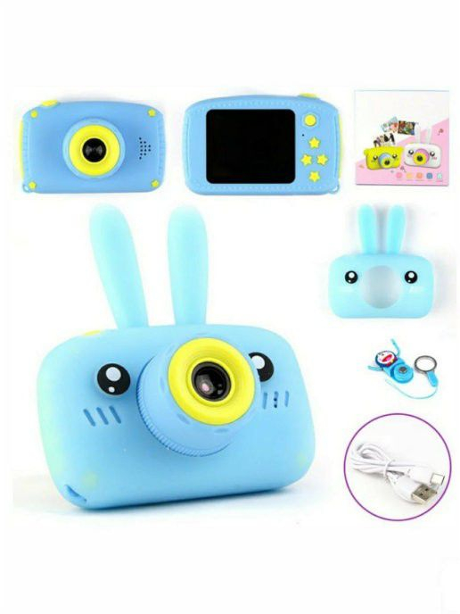 Camera foto digitala pentru copii, model iepuras albastru, este un gadget adorabil, sigur si usor de utilizat de catre cei mici. Carcasa din silicon moale cu urechi de iepuras ii confera un aspect simpatic si o prindere confortabila.