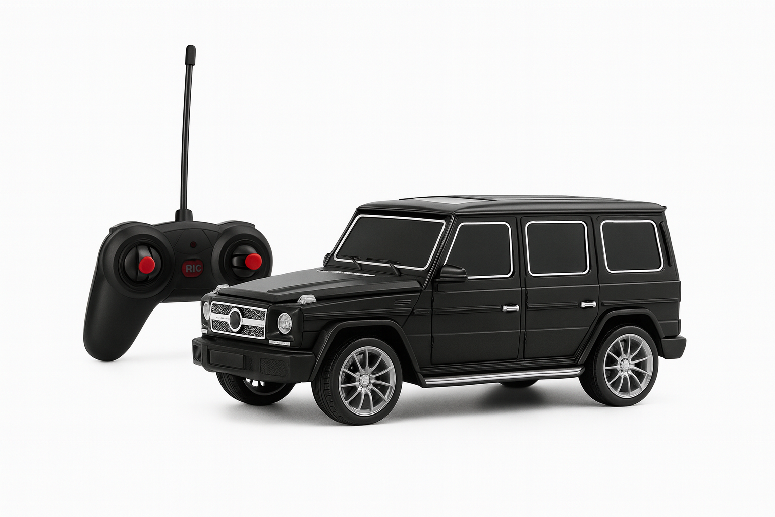 Aceasta masina SUV cu radiocontrol, avand dimensiunile de aproximativ 30 x 12 cm, este inspirata din designul modern al vehiculelor off-road premium. Modelul este dotat cu telecomanda pe frecventa 27 MHz, ideala pentru control usor si stabil, perfect pentru copii pasionati de masini realiste.