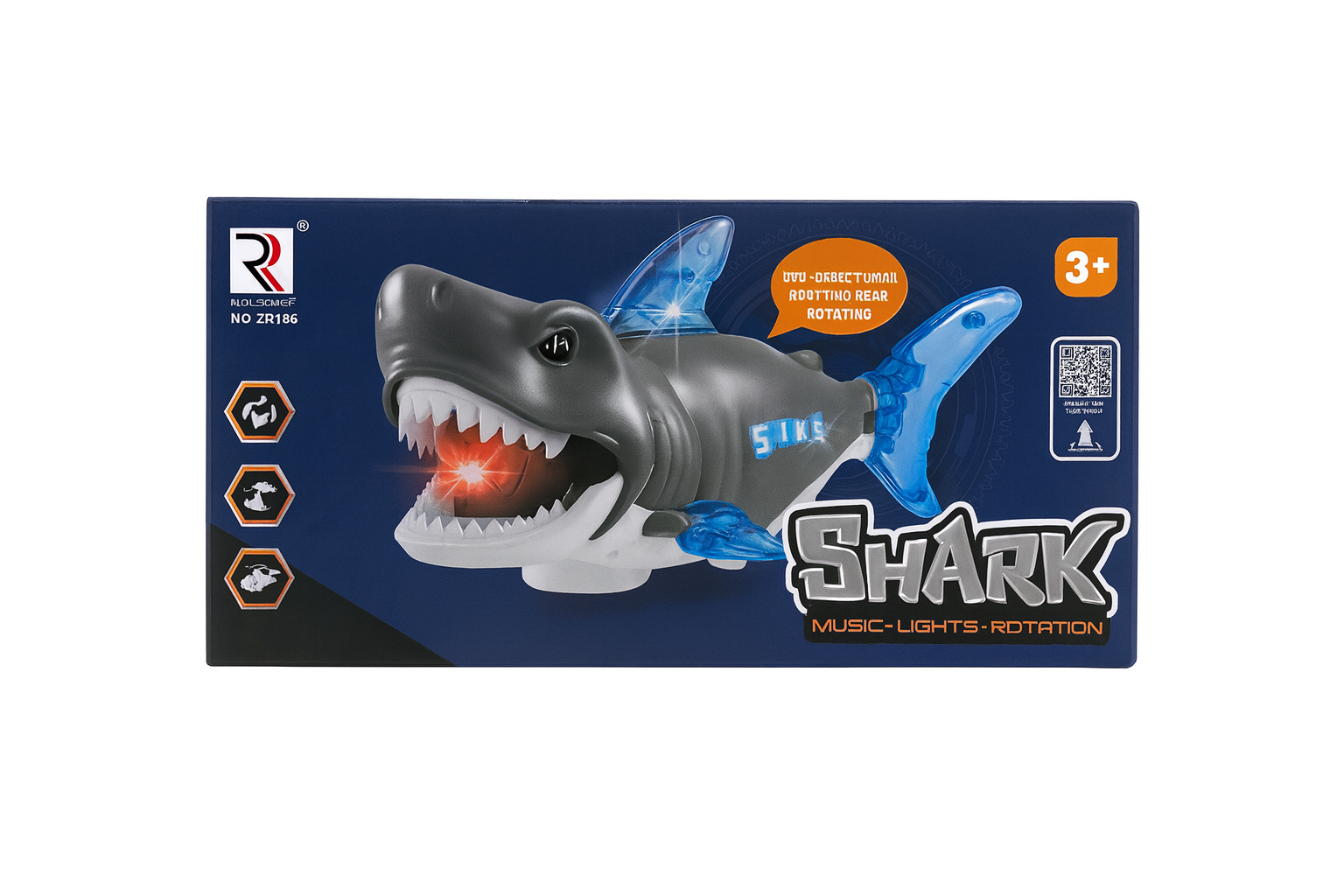 Acest rechin interactiv este jucaria perfecta pentru copiii care adora aventurile marine si jucariile cu efecte speciale. Cu un design realist, culori vibrante si detalii accentuate, rechinul se remarca prin functiile sale spectaculoase: muzica, lumini si coada rotativa.