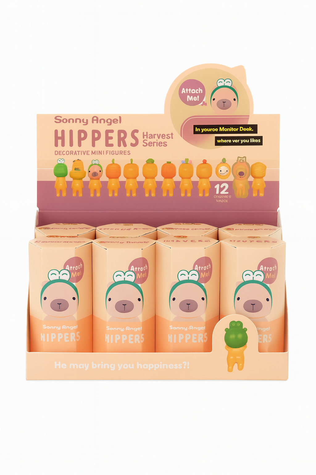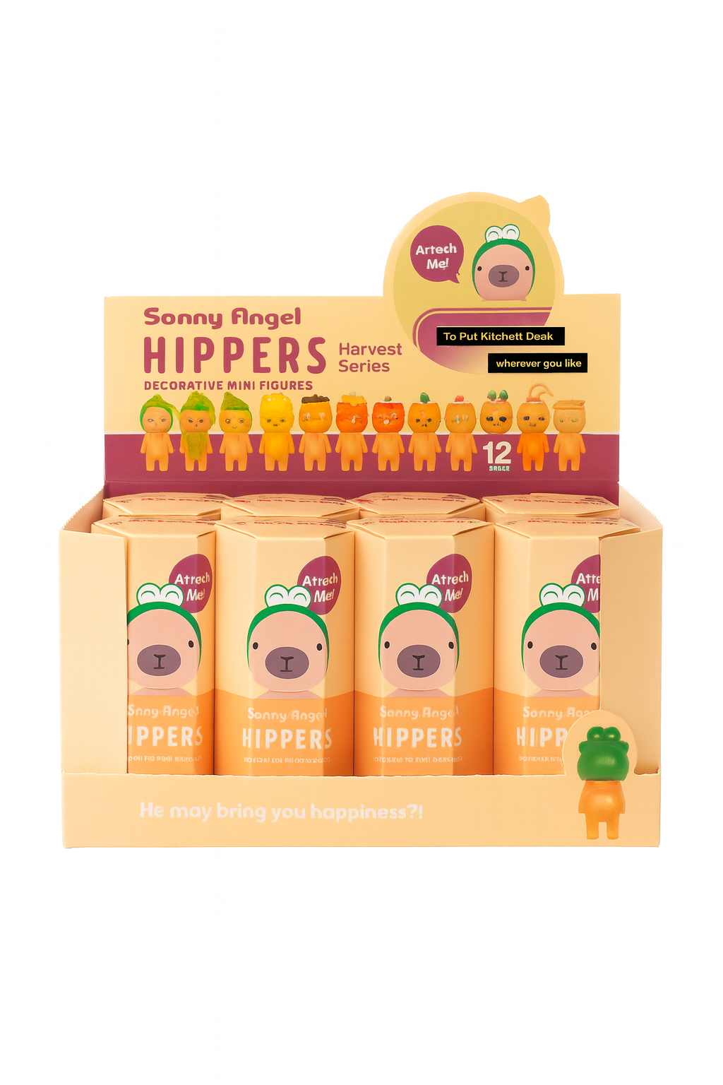 Adu un plus de culoare si veselie pe rafturile tale cu acest set de 12 figurine decorative “Sonny Angel Hippers – Harvest Series”. Inspirate din tematica de toamna, fiecare figurina are un design adorabil, cu personaje stilizate in forma de fructe si legume, perfecte pentru colectionari, cadouri sau decor.