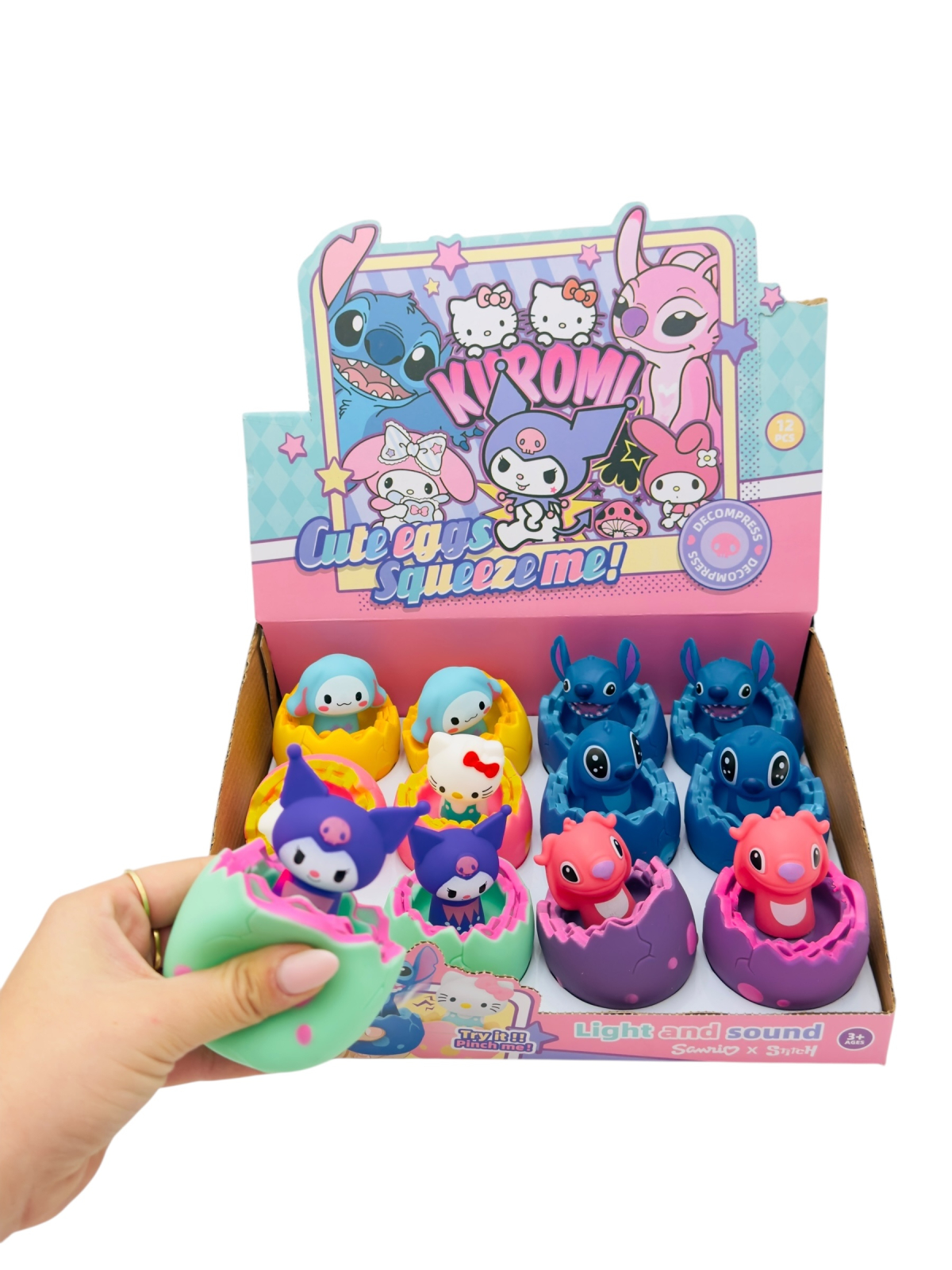 Setul de 12 oua antistres cu lumini si sunet este o jucarie distractiva si surprinzatoare pentru copii. Fiecare ou ascunde o figurina amuzanta care sare in sus atunci cand este apasata, lumineaza si emite sunete, oferind o experienta interactiva perfecta pentru joaca si relaxare.