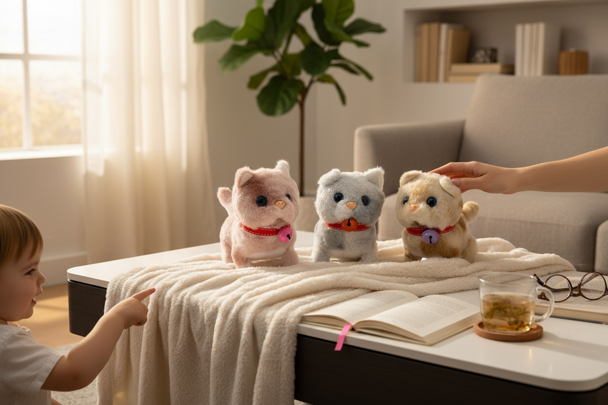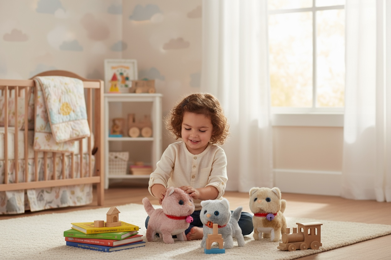 Pisicutele sunt interactive, avand functii care transforma joaca intr-o experienta captivanta: emit sunete si merg, imitand miscarile haioase si prietenoase ale unei pisici reale. Copiii vor fi fascinati de modul in care se misca si scot sunete, incurajand jocul de rol si interactiunea activa.