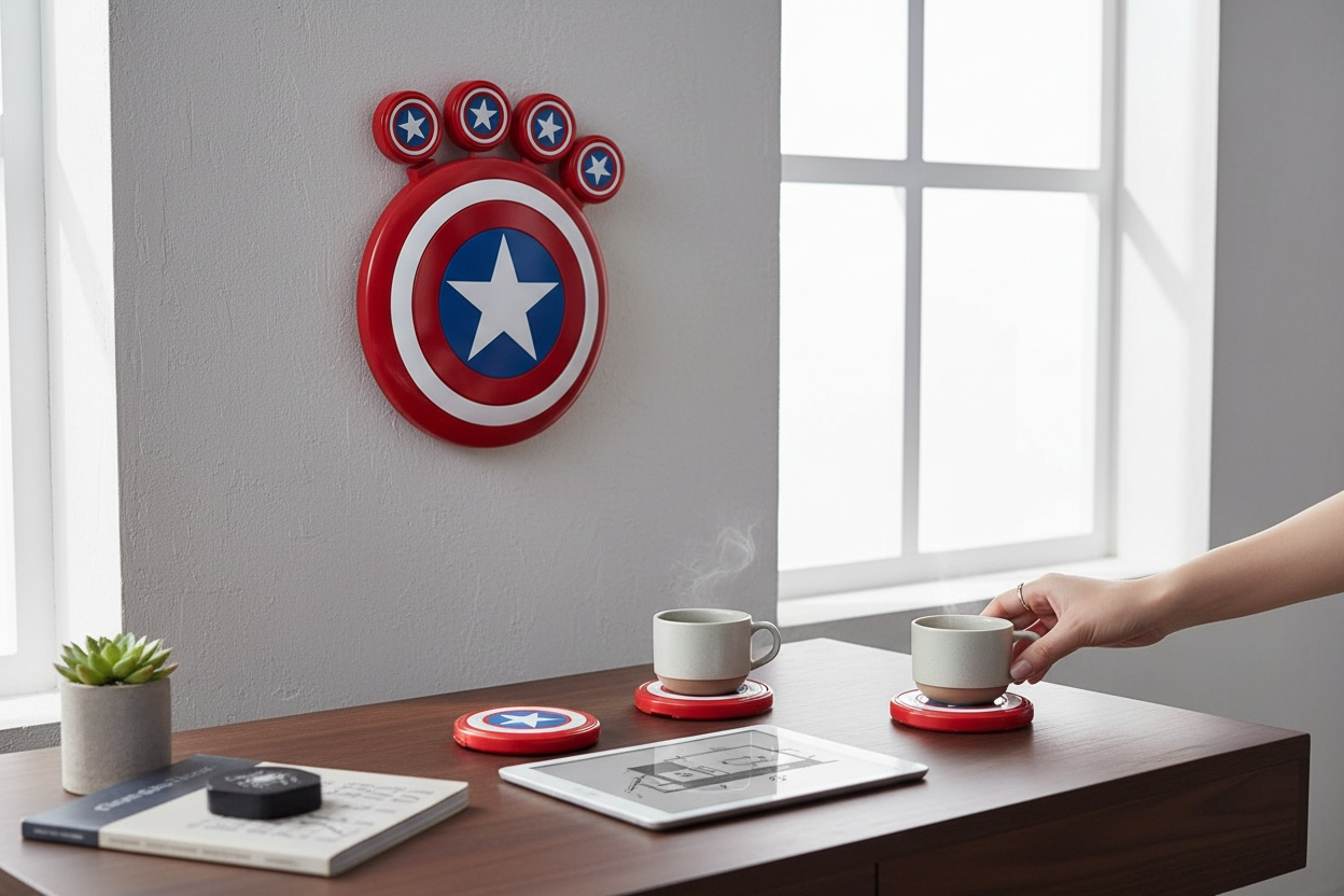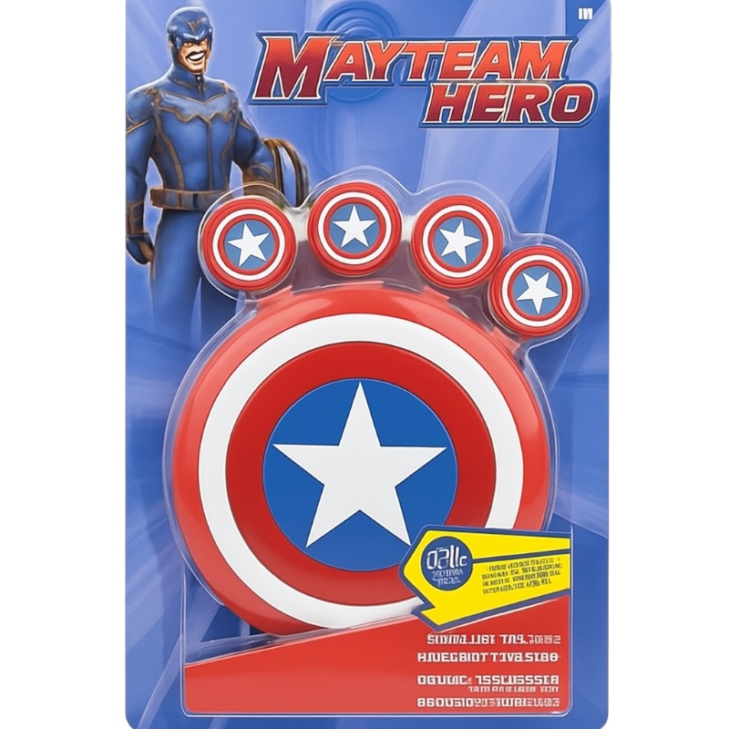 Acest set inspirat din universul supereroilor este perfect pentru copiii care adora aventura, actiunea si jocurile de rol! Include un scut rotund in culori rosu-albastru cu steluța emblematica si patru discuri aruncatoare asortate, ideale pentru a recrea scene heroice sau misiuni de protectie.