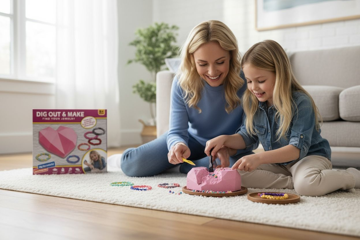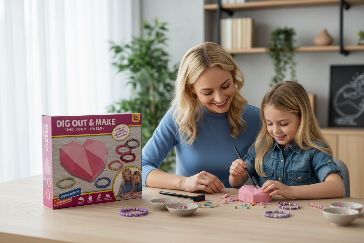 Ofera-i micutei tale o experienta educativa si distractiva cu setul creativ – Dig Out & Make: Find Your Jewelry! Conceput special pentru fetite pasionate de frumos si creativitate, acest set combina joaca cu activitatile educative, stimuland rabdarea, atentia si imaginatia printr-o activitate unica de descoperire si realizare a propriilor bijuterii.