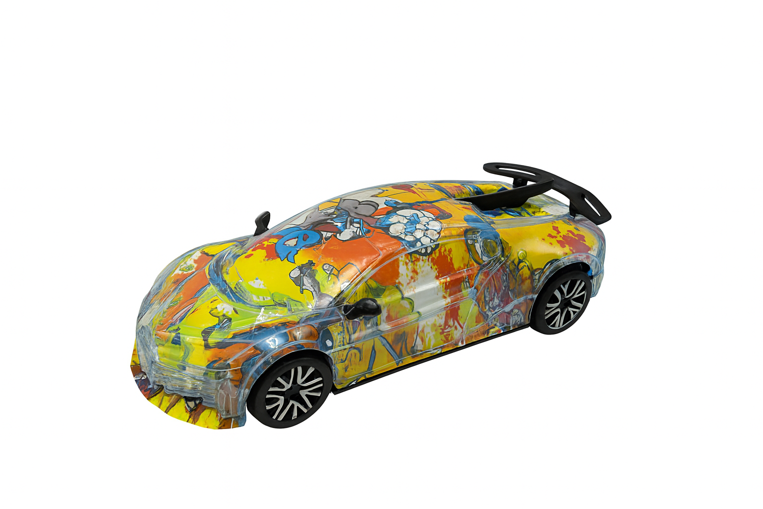 Masinuta Graffiti 18x8 cm impresioneaza prin designul sau colorat si modern, inspirat din arta urbana. Este perfecta pentru copiii care iubesc masinile spectaculoase si efectele interactive.