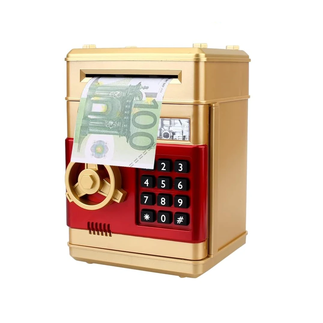 Transforma economisirea intr-o joaca distractiva cu acest seif electronic pentru copii, realizat in culori premium auriu-rosu si prevazut cu tastatura functionala. Pusculita permite introducerea monedelor si bancnotelor si se deschide doar cu parola, exact ca un mini seif adevarat.