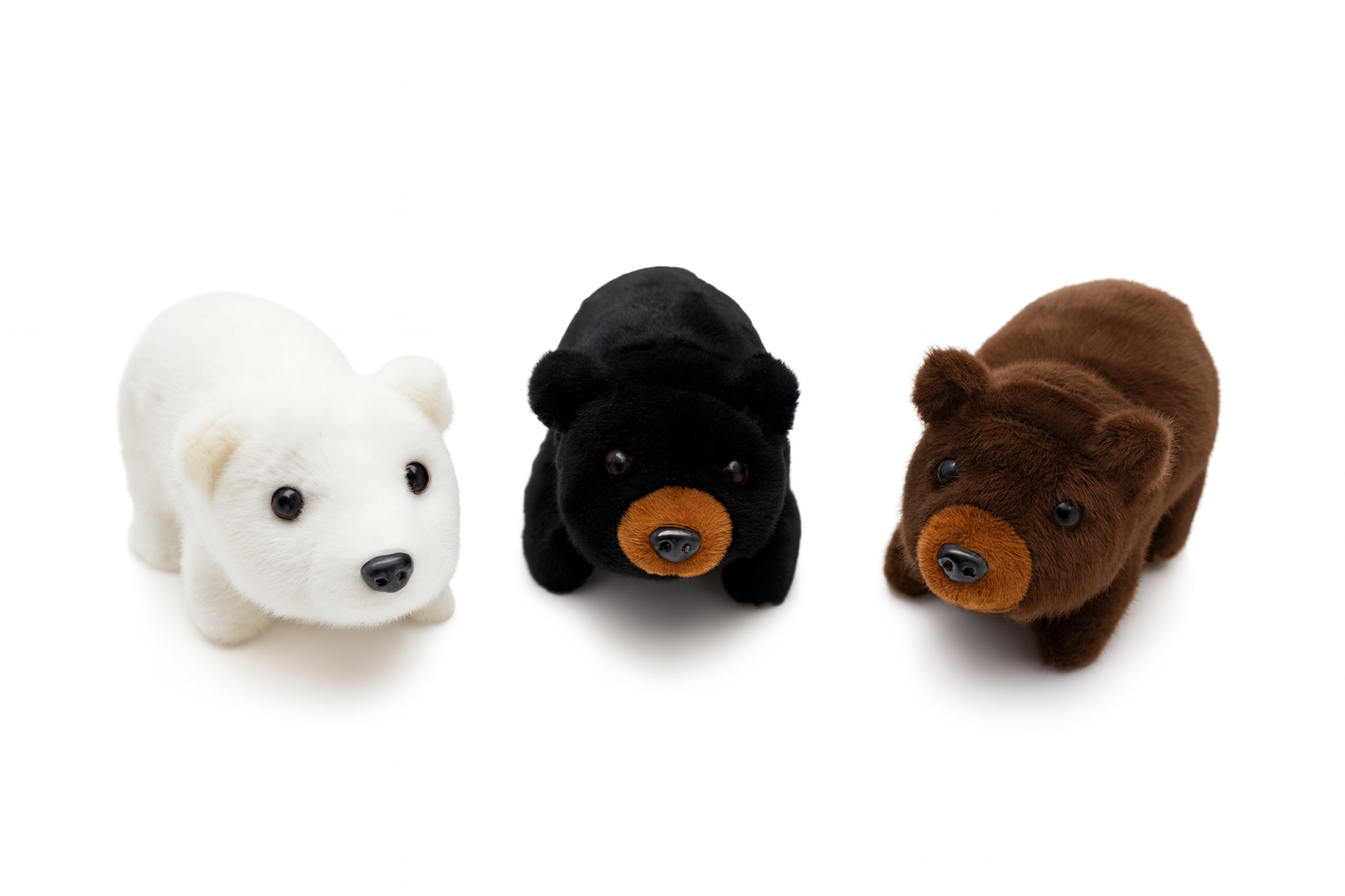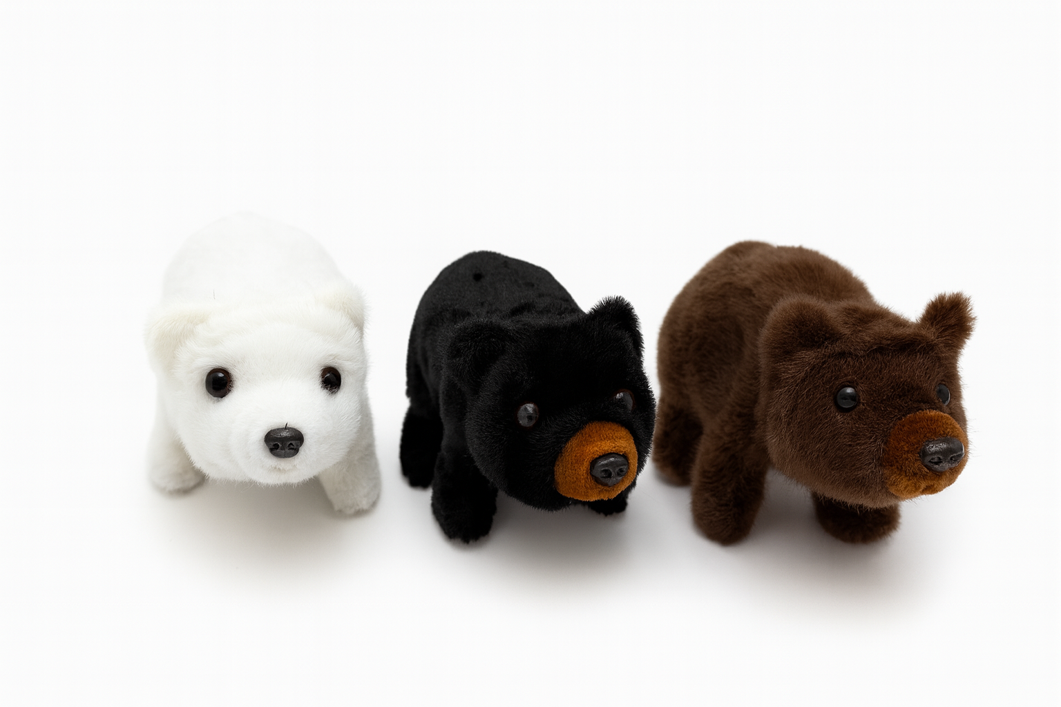 Setul include trei ursuleti de plus – alb, negru si maro – realizati dintr-un material moale, pufos si placut la atingere. Pe langa aspectul adorabil si expresiv, fiecare ursulet prinde viata: se misca si scoate sunete, stimuland imaginatia si dezvoltarea copilului.