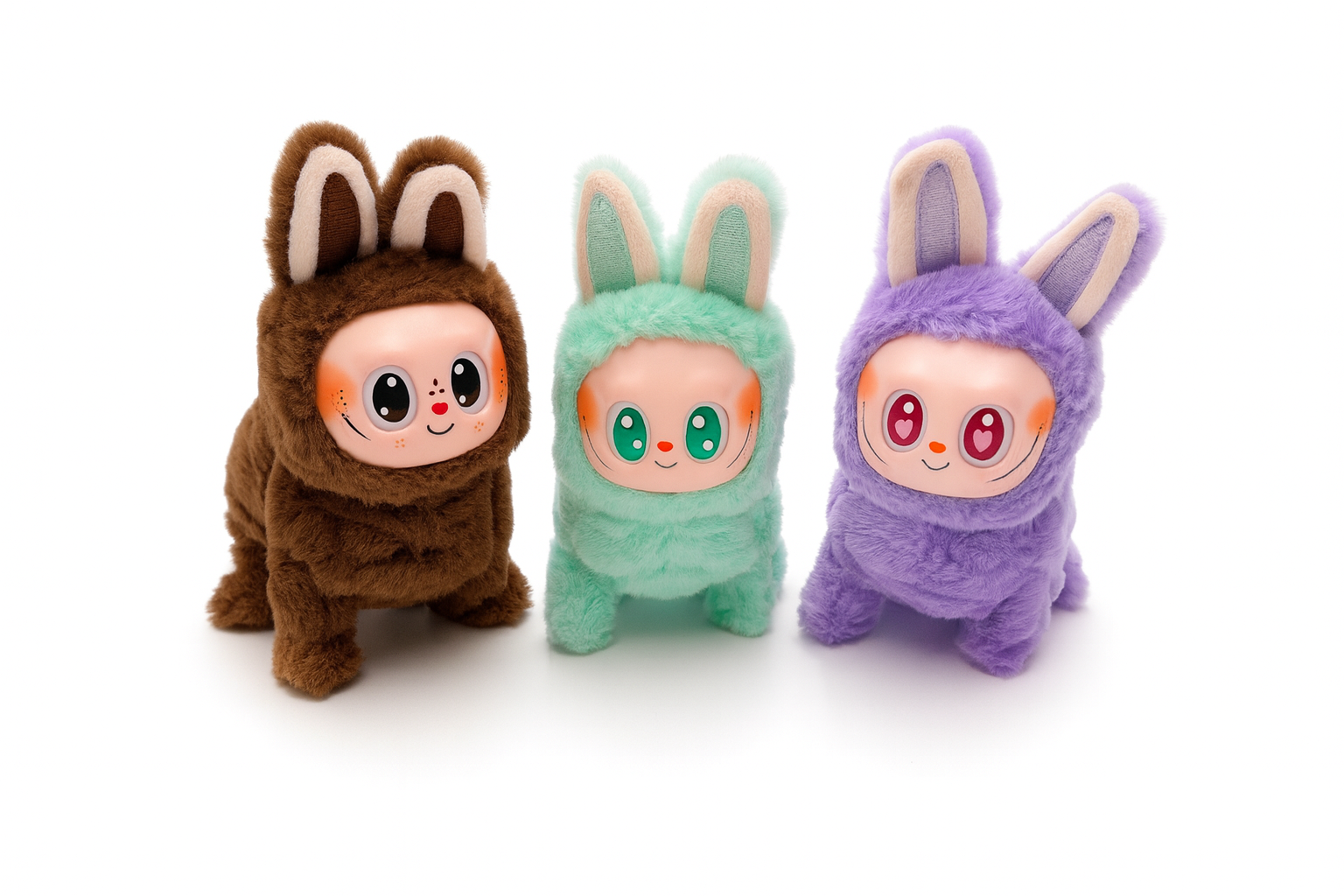 Set 6 Jucarii Labubu Interactive, 19x12 cm – Merg si Canta, Plus Moale, Modele Colorate