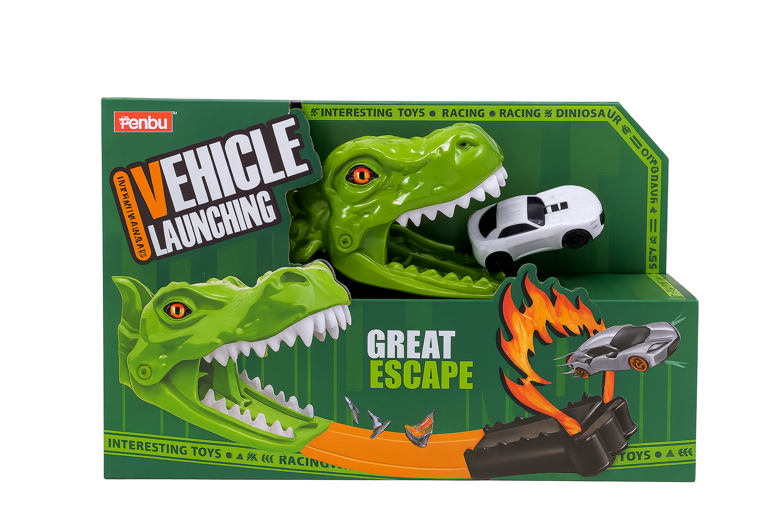 Setul Vehicle Launching – Great Escape provoaca micii soferi la o evadare epica, lansand masinuta din gura unui dinozaur direct spre aventura. Un cadou excelent pentru copiii pasionati de masinute, dinozauri si jocuri dinamice.