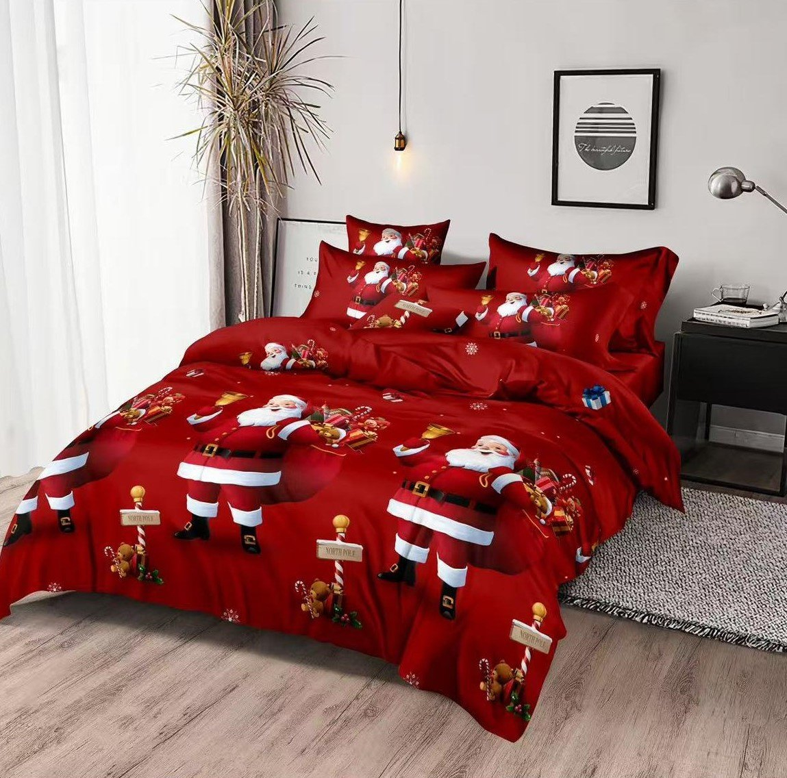 Lenjerie Pat Finet 6 Piese – Model Craciun Mos Craciun Rosu, 200x230 cm