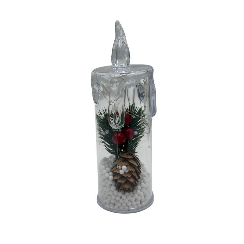 Lumanare LED 22 cm cilindru acrilic cu decor de iarna - baterii neincluse