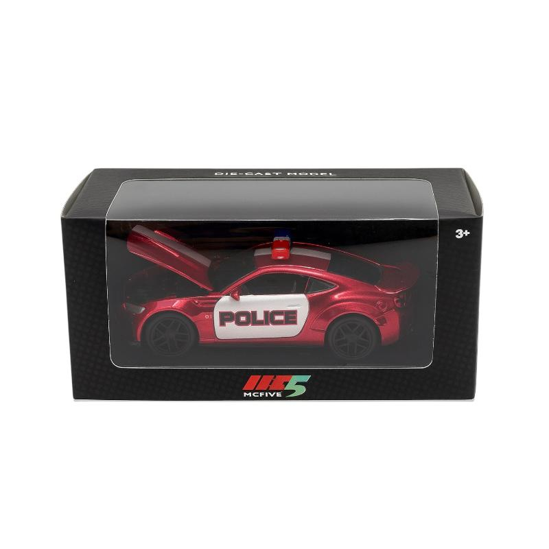 Descopera o masinuta metalica de politie super-sport, ideala pentru micii ofiteri de peste 3 ani. Fabricata prin tehnologia Die-Cast (caroserie metalica si baza/interior plastic), masinuta este robusta si detaliata, oferind o experienta realista. Modelul din imagine este o masina de politie puternica, disponibila in culoarea rosie cu detalii albe ("POLICE" inscriptionat) si girofaruri functionale rosii/albastre.