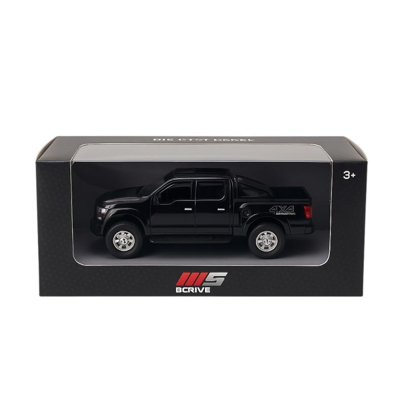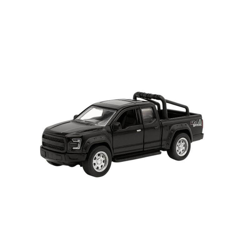 Descopera o masinuta metalica off-road robusta, ideala pentru micii exploratori de peste 3 ani. Fabricata prin tehnologia Die-Cast (caroserie metalica si baza/interior plastic), masinuta este detaliata si ofera o experienta realista. Modelul din imagine este o camioneta puternica, disponibila in culoarea negru cu detalii cromate.