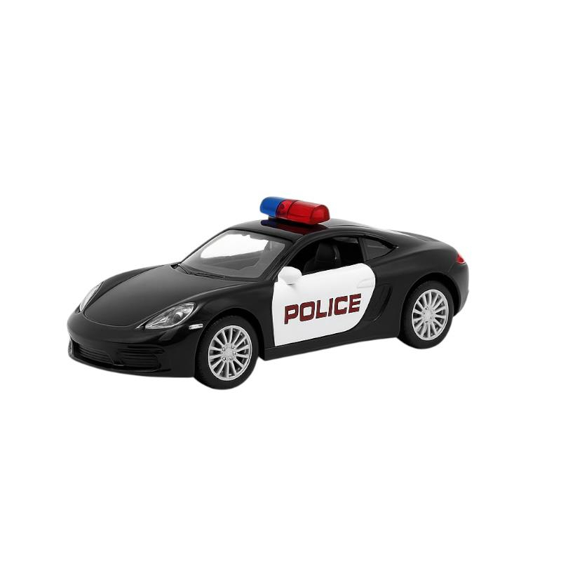 Descopera o masinuta metalica de politie super-sport, ideala pentru micii ofiteri de peste 3 ani. Fabricata prin tehnologia Die-Cast (caroserie metalica si baza/interior plastic), masinuta este robusta si detaliata, oferind o experienta realista. Modelul din imagine este o masina de politie puternica, similara unui model sport coupe, disponibila in culoarea negru cu detalii albe ("POLICE" inscriptionat) si girofaruri functionale rosii/albastre.