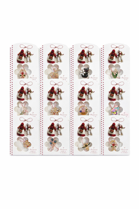 Fiecare brosa este finisata cu atentie si fixata pe un suport practic, facilitand distribuirea rapida si estetica a cadourilor de 1 Martie intr-un colectiv numeros.