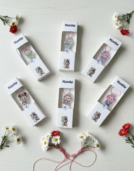 Setul contine 24 brose martisor cu modele combinate, fiecare brosa fiind ambalata individual intr-un ambalaj specific martisorului, practic si elegant. Snurul traditional alb rosu este prezent la fiecare piesa si simbolizeaza primavara, norocul, protectia si echilibrul, fiind un element esential al traditiei de 1 Martie.
