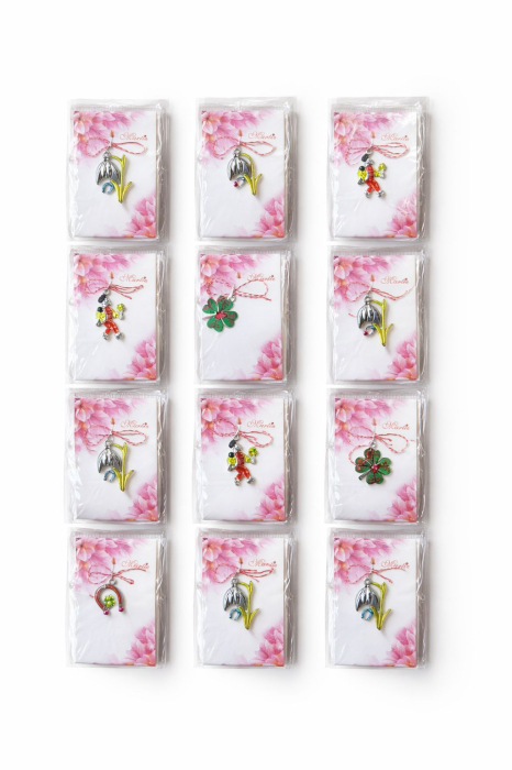 Set 100 de martisoare modele combinate, ambalaj individual elegant, 9x5cm