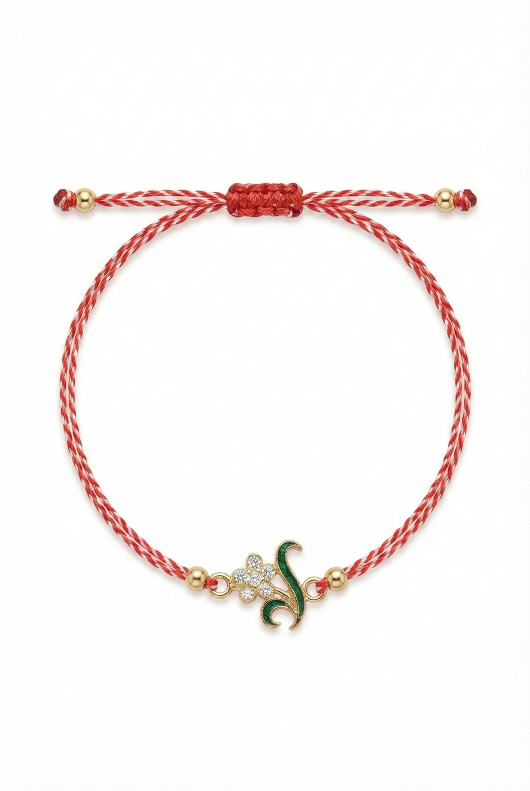 Setul contine 12 bratari martisor realizate pe snur traditional alb-rosu, fiecare decorata cu un element metalic delicat in forma de floare, cu petale incrustate cu strasuri stralucitoare. Designul floral este elegant si feminin, fiind conceput pentru a capta lumina si a oferi un efect vizual rafinat si atragator.