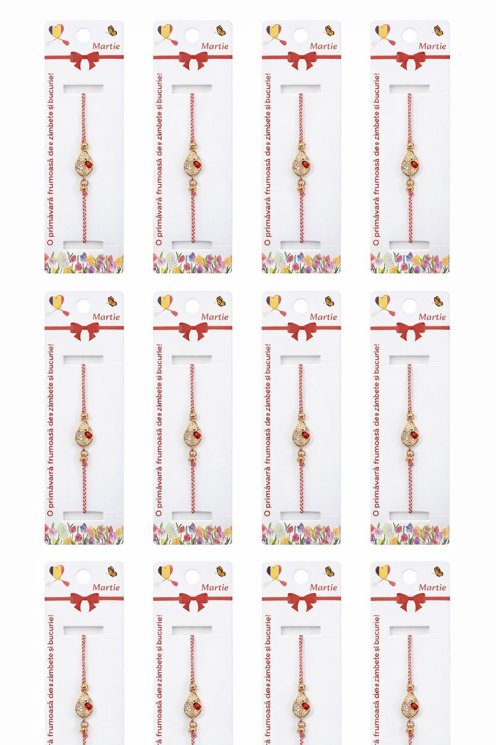 Ambalajul este conceput special pentru prezentare si oferire directa. Fiecare bratara este ambalata individual pe suport cartonat tematic, decorat cu elemente grafice de primavara, flori colorate si mesaj specific martisorului. Suportul este prevazut cu orificiu pentru agatare, fiind ideal pentru expunere in magazine, oferire in scoli, gradinite, birouri sau ca martisor corporate, fara a necesita reambalare suplimentara.