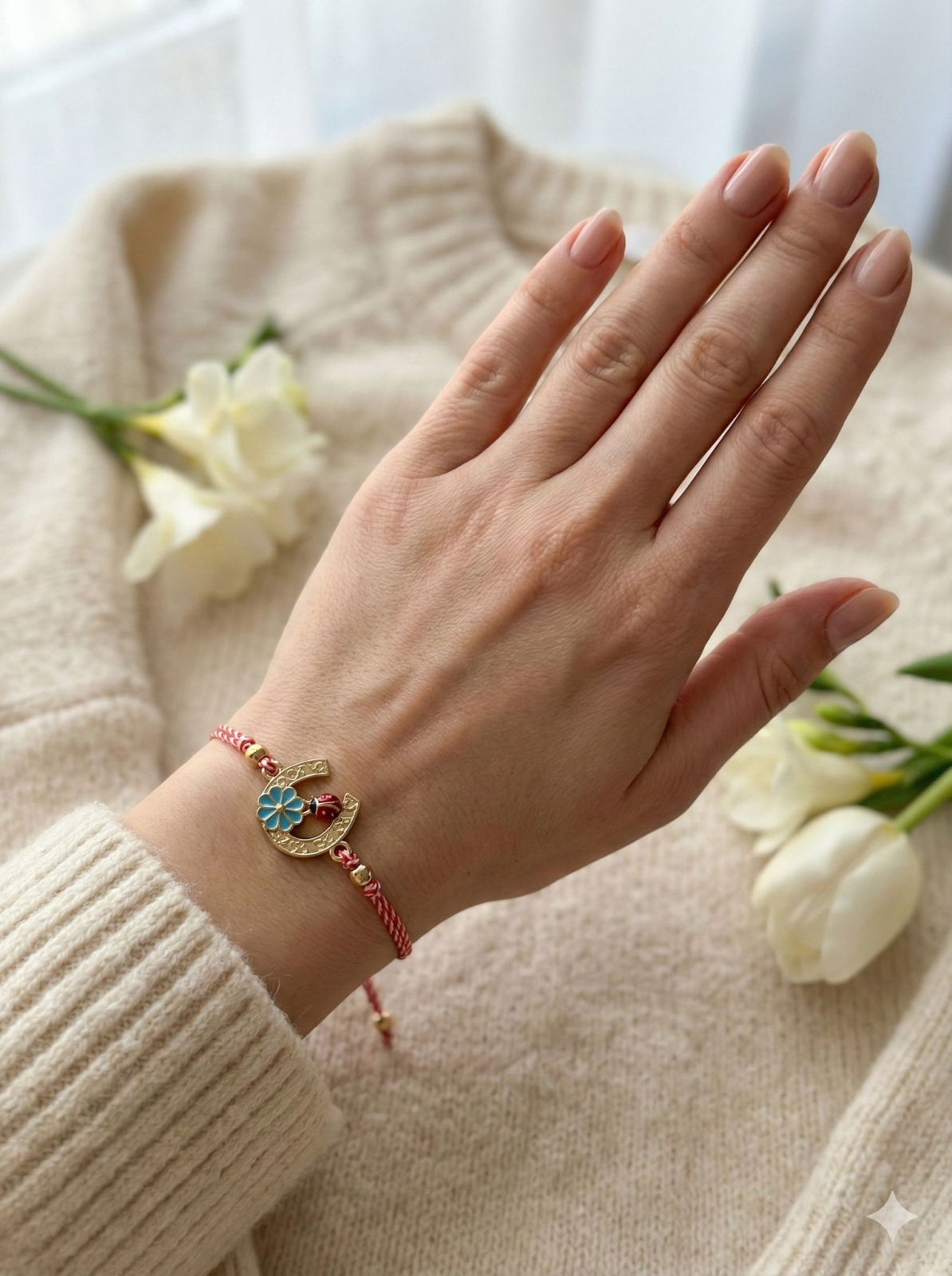 martisoare tip bratara, perfecte pentru a celebra venirea primaverii si a darui un simbol traditional al norocului. Fiecare bratara are un snur reglabil in culorile traditionale