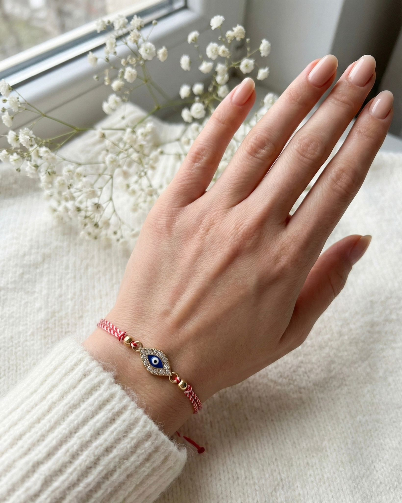 Fiecare bratara este decorata cu un talisman protector auriu, incrustat cu strasuri stralucitoare. Acest simbol este asociat cu apararea impotriva energiilor negative, aducand liniste, siguranta si noroc celui care il poarta. Designul elegant transforma martisorul intr-un accesoriu cu semnificatie profunda si mesaj pozitiv.