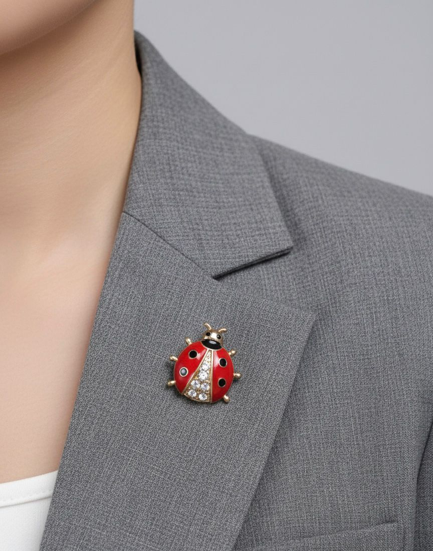 Broselor au un design elegant si atragator, realizate in nuante de rosu intens, cu detalii aurii si strasuri decorative aplicate central, care ofera un efect stralucitor si festiv. Modelul este potrivit atat pentru adulti, cat si pentru copii, fiind usor de purtat pe haine, sacouri, genti sau esarfe.
